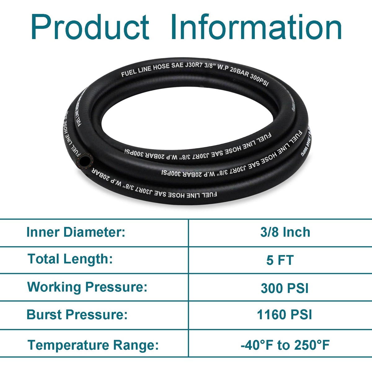 Housun Fuel Line 3/8 Inch Id, Fuel Hose 5Ft, J30R7 Fuel Line Hose Nbr With 4 Clamps.
