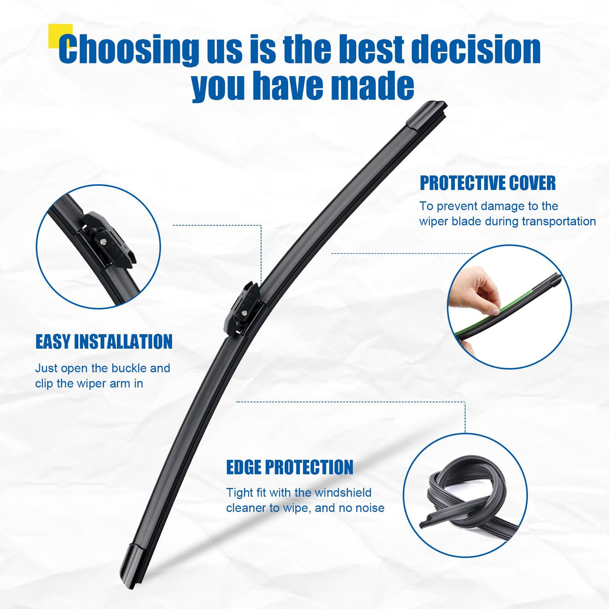 Q: How easy is it to install these wiper blades?A: These wiper blades are designed for easy installation without the need for awkward adapters. You can install them in seconds, ensuring a perfect fit for your Mini Cooper Countryman.