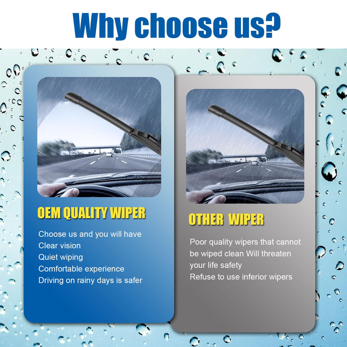 Q: What vehicles are compatible with the HRSNO® 26"+18" Wipers?A: The HRSNO® 26"+18" Wipers are designed to fit a variety of vehicles including the Honda Civic (2016-2021), HR-V (2016-2022), Kia Sedona (2014-2021), Nissan Murano (2015-2023), Toyota Camry (2012-2017), and Prius Quest (2004-2009), among others. Always check your vehicle's specifications for proper fit.