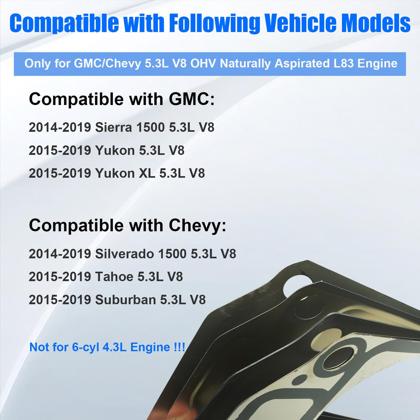 ?Fitment?HGS4308 head gasket fits for GMC 2014-2019 Sierra 1500 5.3, 2015-2019 Yukon/Yukon XL 5.3; for Chevrolet/Chevy 2014-2019 Silverado 1500 5.3, 2015-2019 Tahoe 5.3, 2015-2019 Suburban 5.3 OHV Naturally Aspirated L83 5.3L Engine. ?Replace OE Number?HGS4308, HS26744PT, HS54996, HS8429, 12657968, 12622325, 12630883, 12626354 head gasket kit. ?High Reliability?HS26744PT head gasket can replace the old or broken parts directly. You can replace the head gasket set yourself, saving time and hundreds of dollars off dealer prices. ?Advantages?brand new in factory packaging. Every head gasket set design must undergo rigorous testing before being considered for production, which ensuring optimal performance and durability.