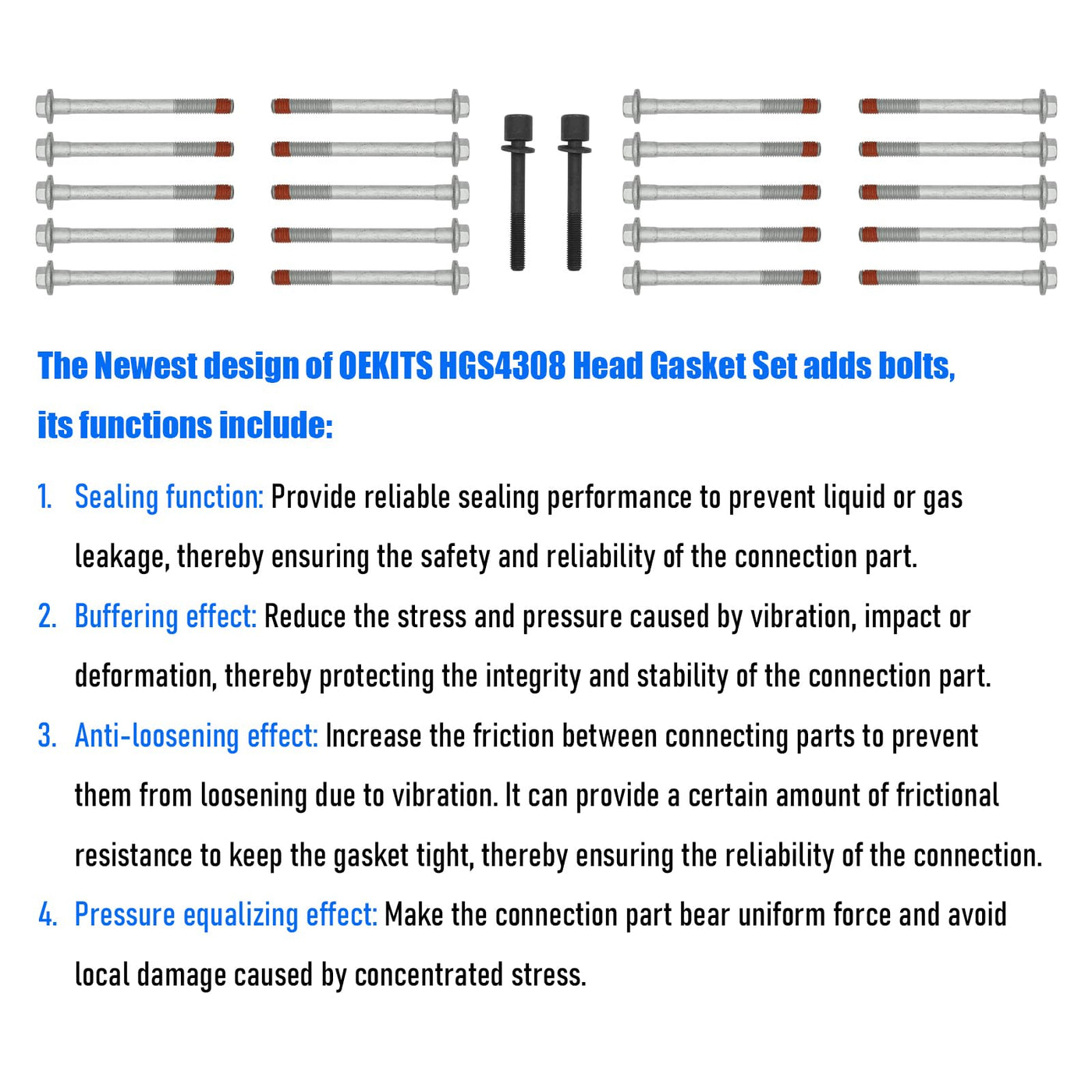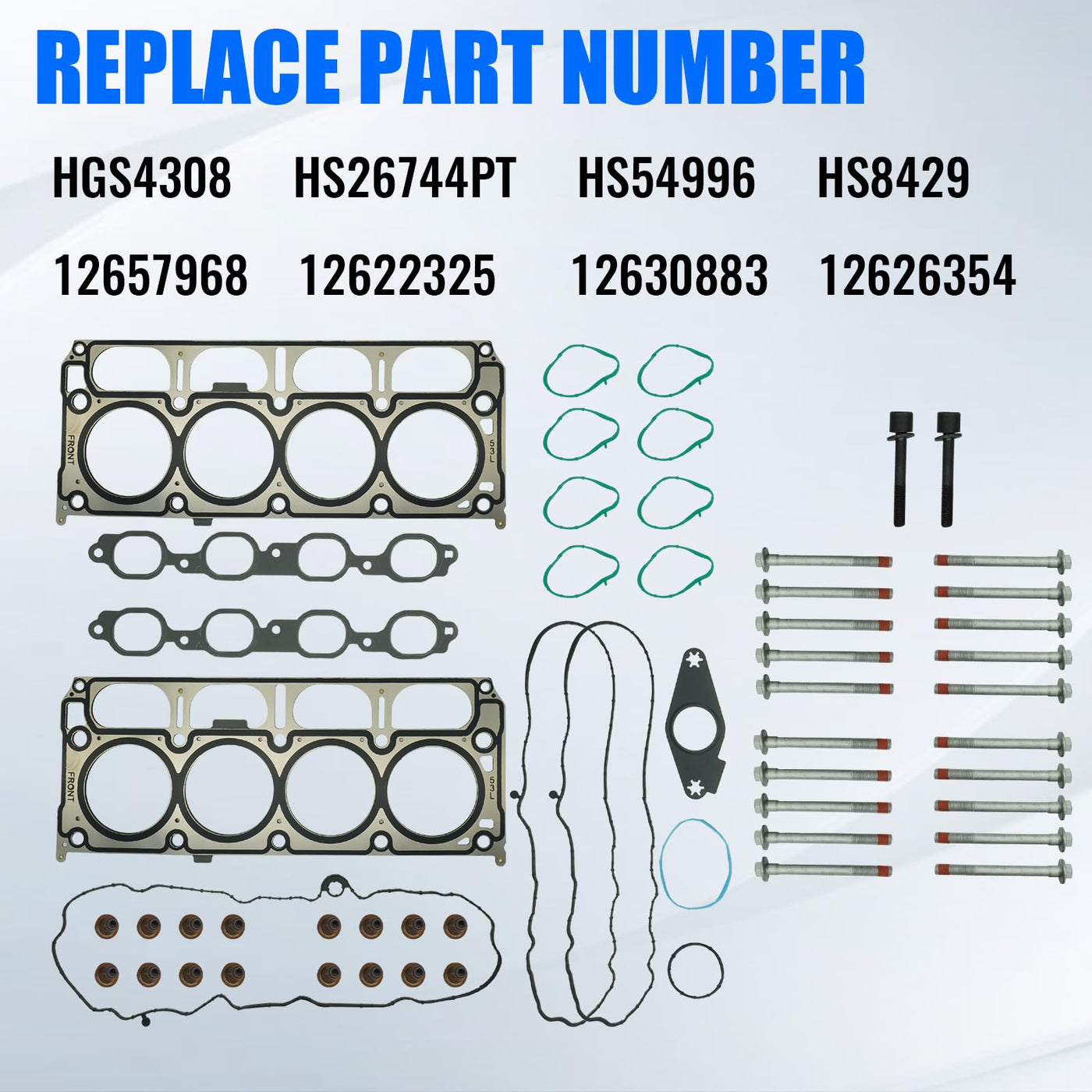 HS26744PT HGS4308 Cylinder Head Gasket Set Kit Bolt 5.3 for Chevy Silverado 1500 Tahoe Suburban, for GMC Sierra 1500 Yukon XL 5.