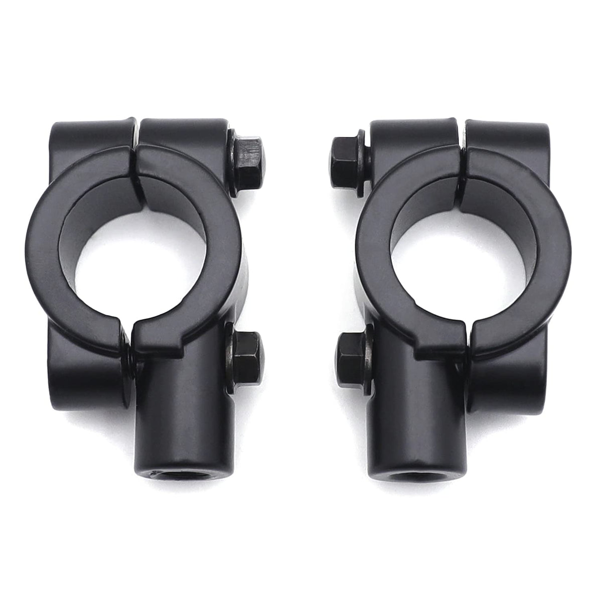 Q: What is the compatibility of the HTTMT MT-JINGZUO-002-25-BK mirror mount clamp?A: The HTTMT MT-JINGZUO-002-25-BK mirror mount clamp is designed to fit 1 inch (25mm) handlebars with a 10mm standard thread size, making it suitable for most motorcycles, ATVs, and dual sport applications.
