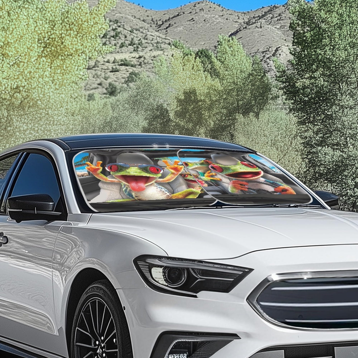 Huisefor Funny Frog Windshield Cover For Summer Green Car Sun Shade Uv Rays Protecttive Automotive Windshield Sunshade For Suv V