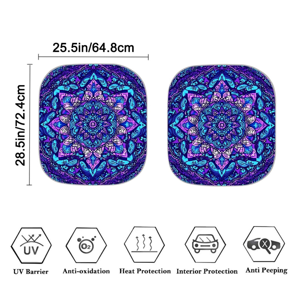 HUISEFOR Mandala Purple Windshield Sun Shade for Auto, Purple Car Sunshade Sun Visor Front Windshield Cover, Great for Outdoor T