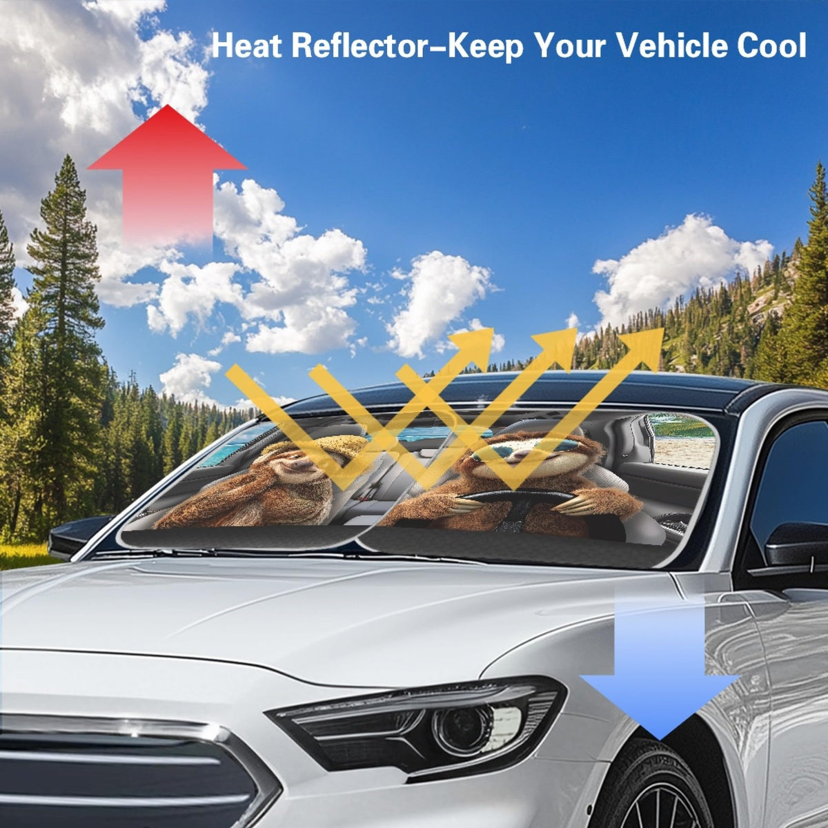 Huisefor Sloth Car Windshield Sunshade 2 Piece Funny Windshield Cover For Summer Heat Resistant Car Sun Visor For Suv Vehicle Se