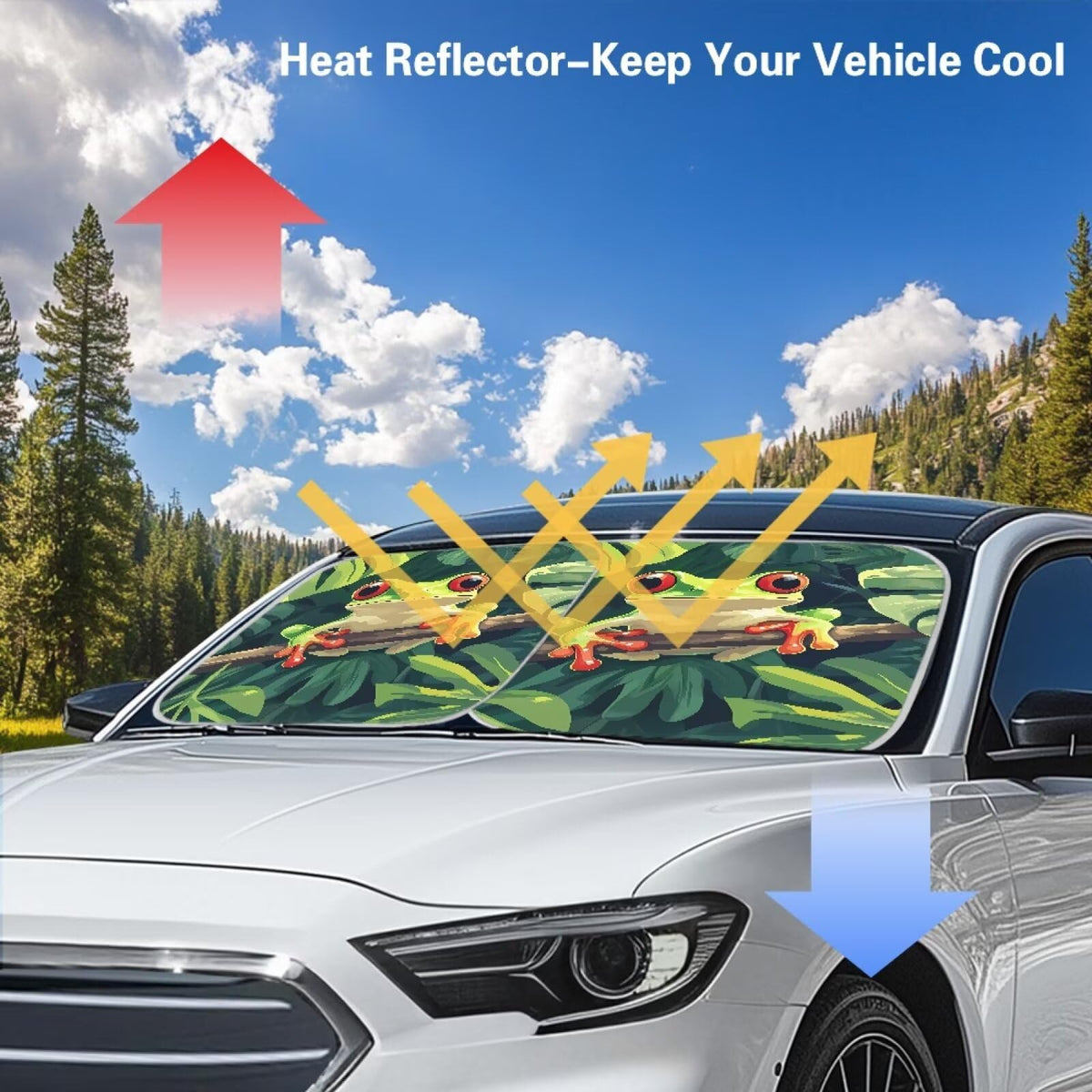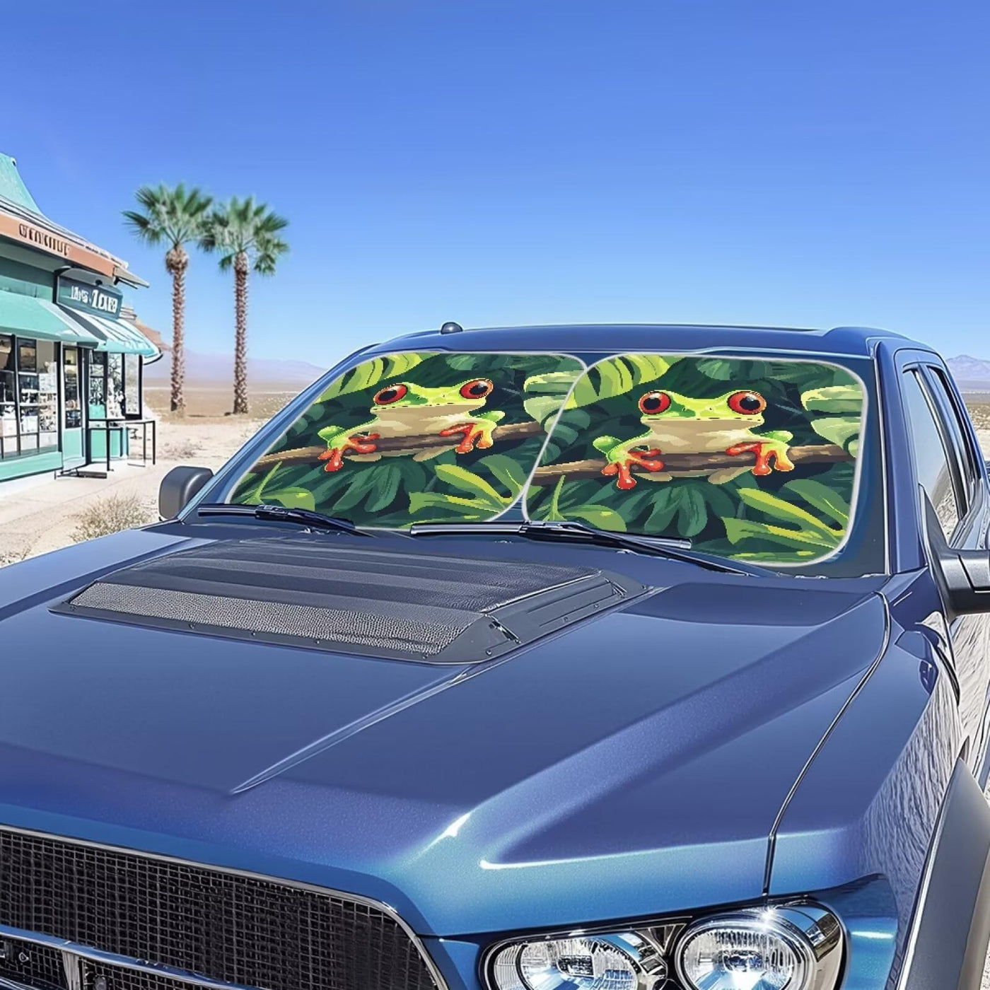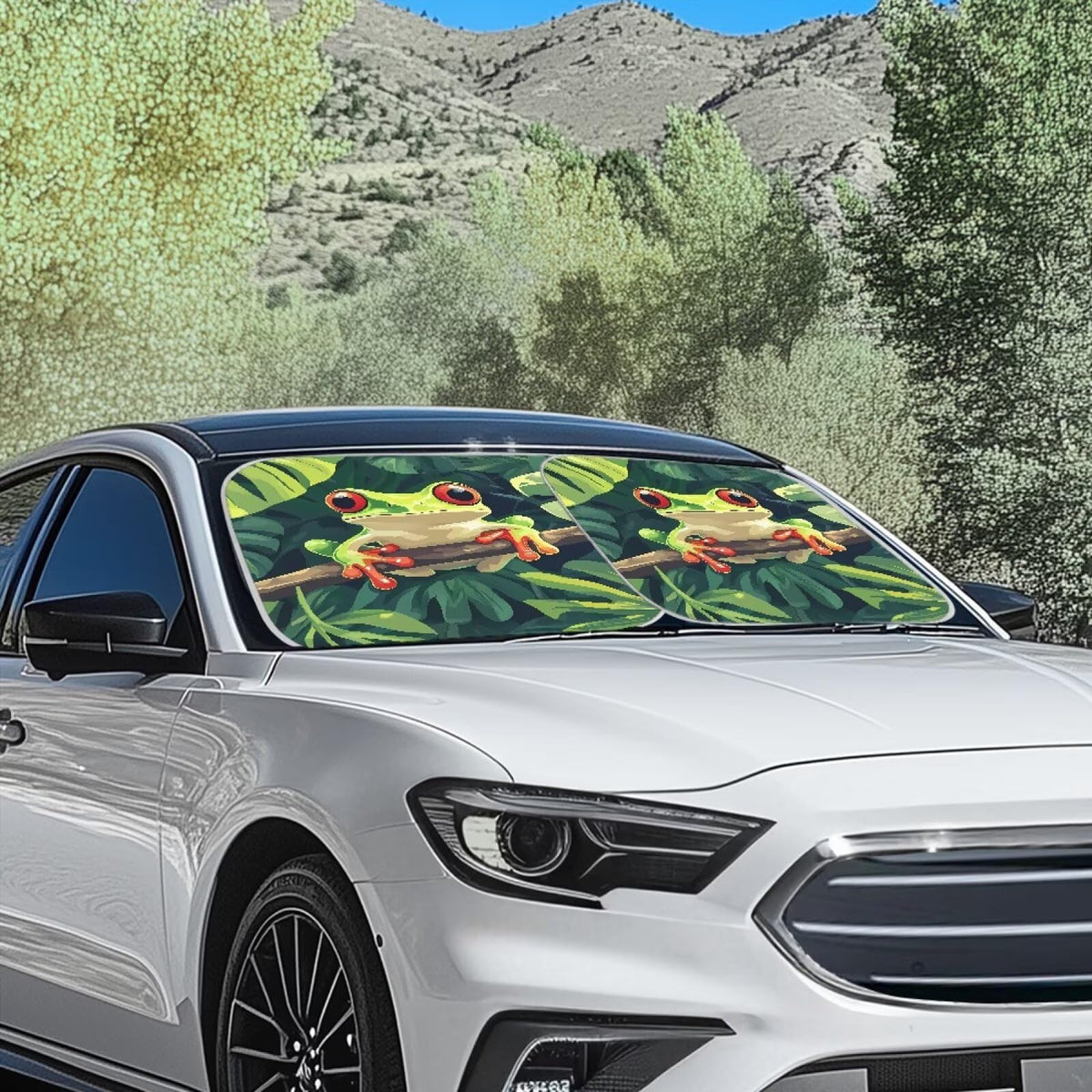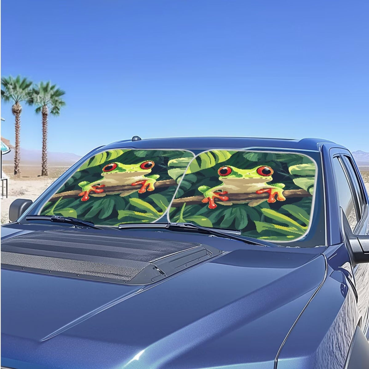 HUISEFOR Tropical Car Windshield Sun Shade 2 Pack Frog Windshield Cover Foldable Car Sun Visor Heat Resistant UV Rays Blocker Su