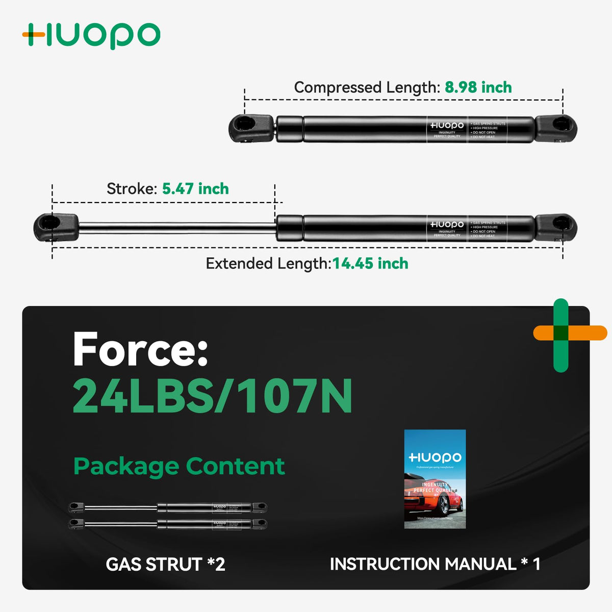 HUOPO C16-04154 15 Inch 24 lb/107 N Gas Struts Shocks 15'' Lift Support for Snugtop Leer Camper Shell Topper Rear Windows Door T