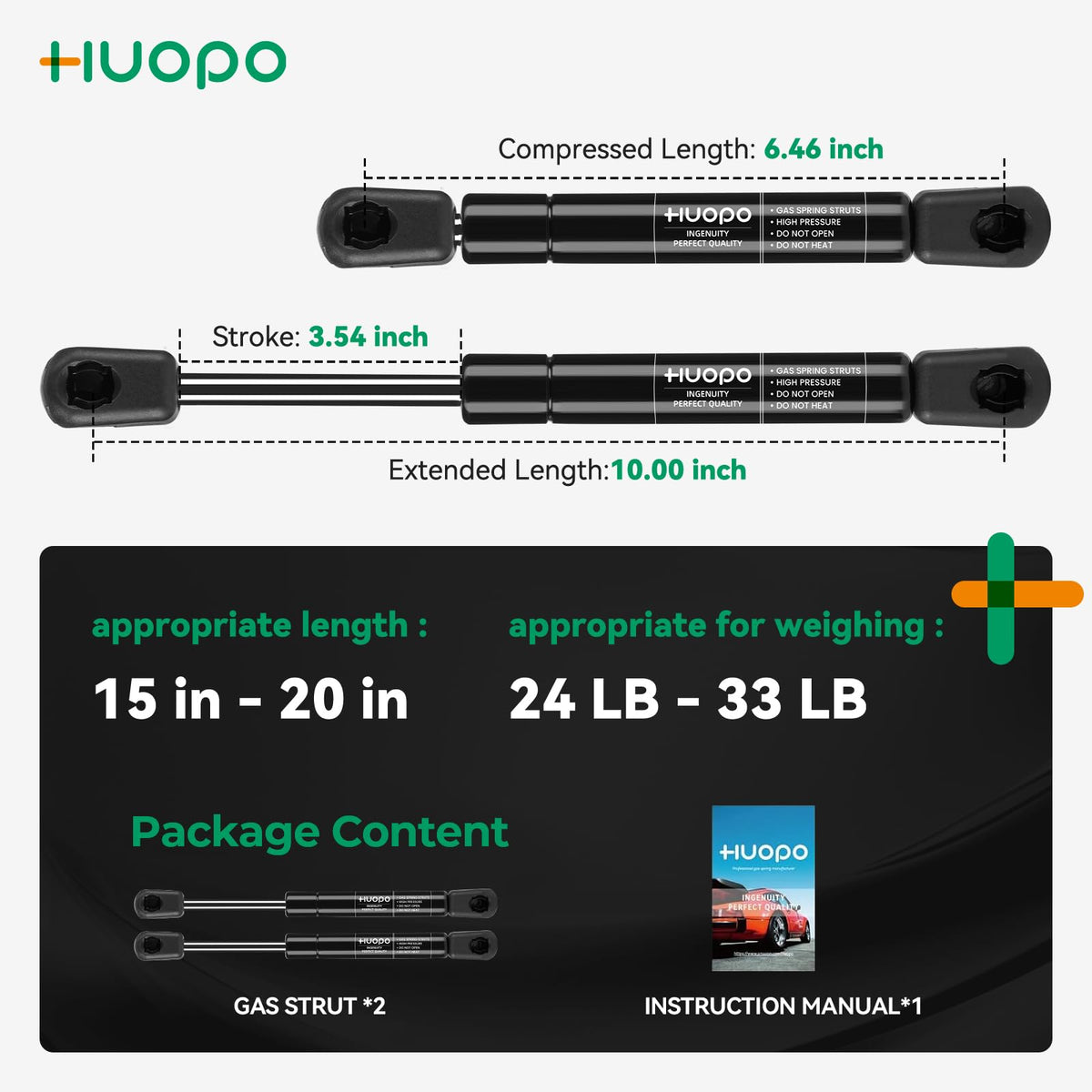 Huopo C16-18457 10 Inch 30Lb/133N Gas Struts Springs Shocks Lift Support For Truck Toolboox Lid Rv Overhead Cabinet Door Pickup