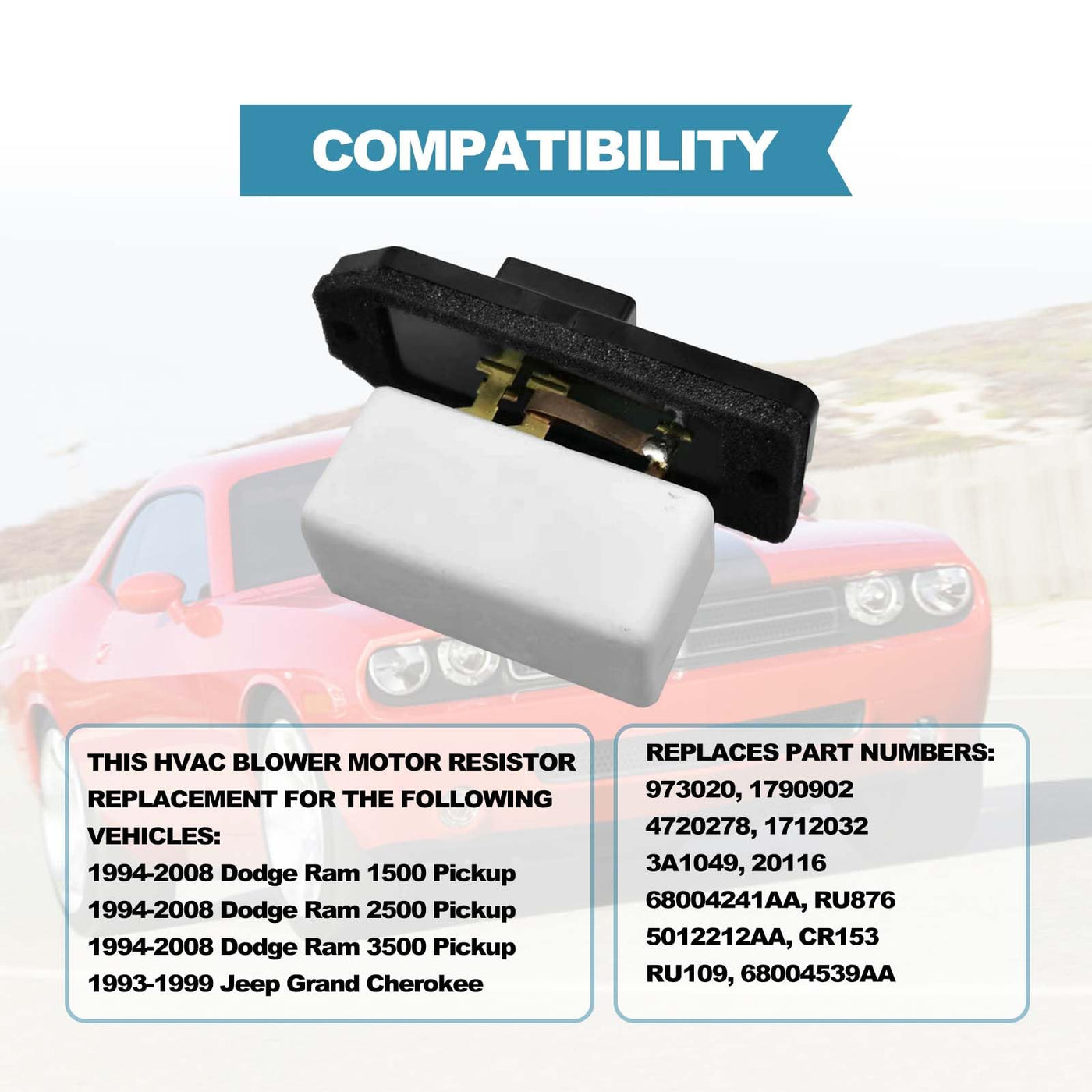 HVAC Fan Blower Motor Resistor Replacement for 1994-2008 D0dge Ram 1500/2500/3500 Pickup,1993-1999 Grand Cherokee Replaces 47202