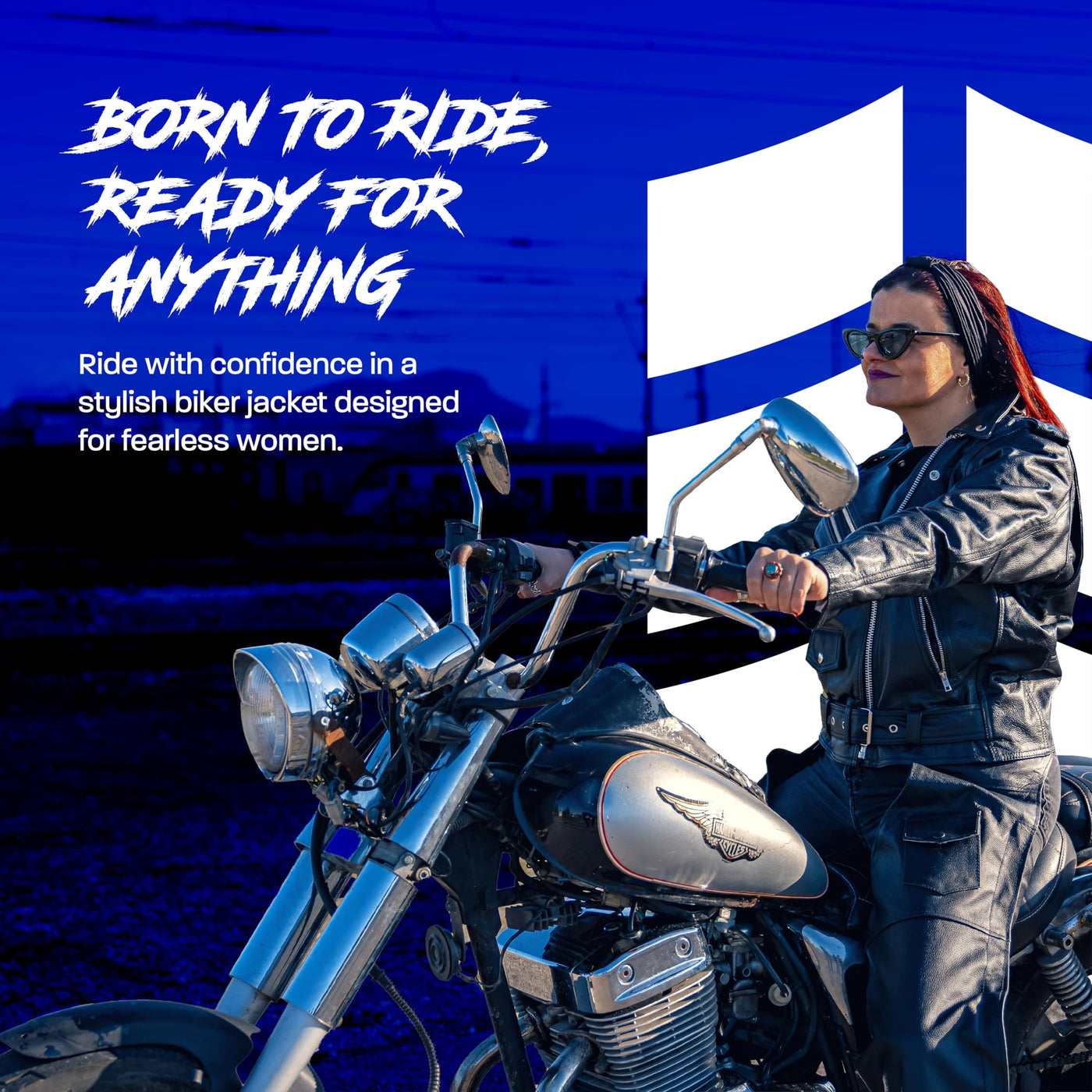 Hwk Brando Leather Motorcycle Jacket For Women, Genuine Leather Women'S Motorcycle Jacket With Micro Polyester Thermal Lining Fo