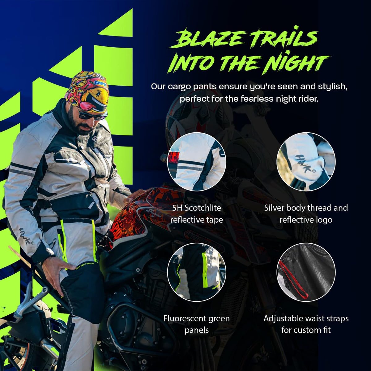 Rev Up Your Ride With Our Hawk Moto Hi Vis Motorcycle Cargo Pants. Crafted For The Daring And The Adventurous, Our Hwk Motorcycle Pants Aren'T Just Ordinary Motorcycle Rain Gear For Men-They'Re Your Ultimate Waterproof Motorcycle Pants. Tear Through Storms, Dry And Cool, Thanks To Our High Quality Water Resistant Bike Pants. Built Tough With Ce Armor For Knees And Hips And Rugged Polyester Fabric, Our Motorcycle Pants With Armor Are Engineered To Conquer Any Terrain You Dare To Tackle. But Thats Not All! Our High Vis Pants, Featuring Reflective Tape And Fluorescent Panels, Ensures You'Re Visible Even In The Darkest Of Nights. And With Convenient Cargo Pockets For Secure Storage And An Adjustable Waist System For A Custom Fit, Our Motorcycle Overpants Are Not Just Protective; They'Re Practical Too, Ready For Any Adventure. So Gear Up, Join The #Hwk Community, And Let'S Make Every Ride Your Most Epic One Yet With Our Hawk Motorcycle Cargo Pants.