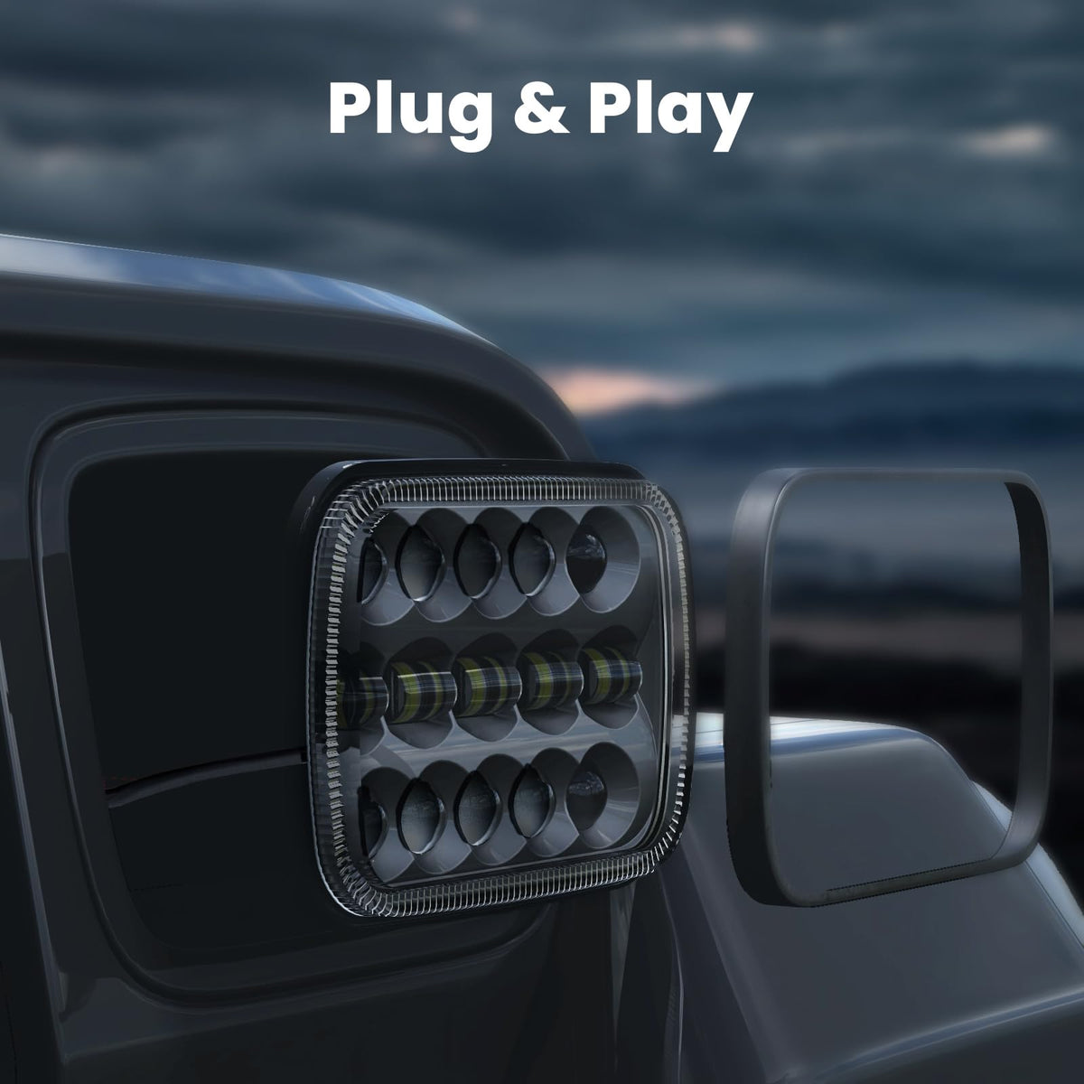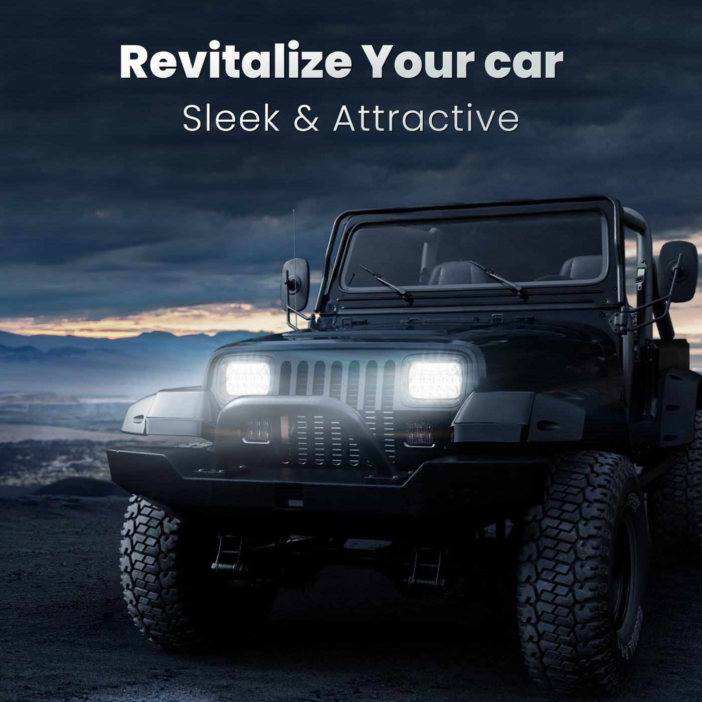 Q: What vehicles are compatible with the HWSTAR 110W 5x7 LED Headlights?A: The HWSTAR 5x7 LED Headlights are compatible with various vehicles that have 5x7 inch (also known as 7x6) square headlights. This includes models such as the 1986-1995 Jeep Wrangler YJ, 1979-2001 Cherokee XJ, Ford E-series and F-series, C4 Corvette, GMC Savana, Dodge W250, and more. If you're unsure about compatibility, please consult us.