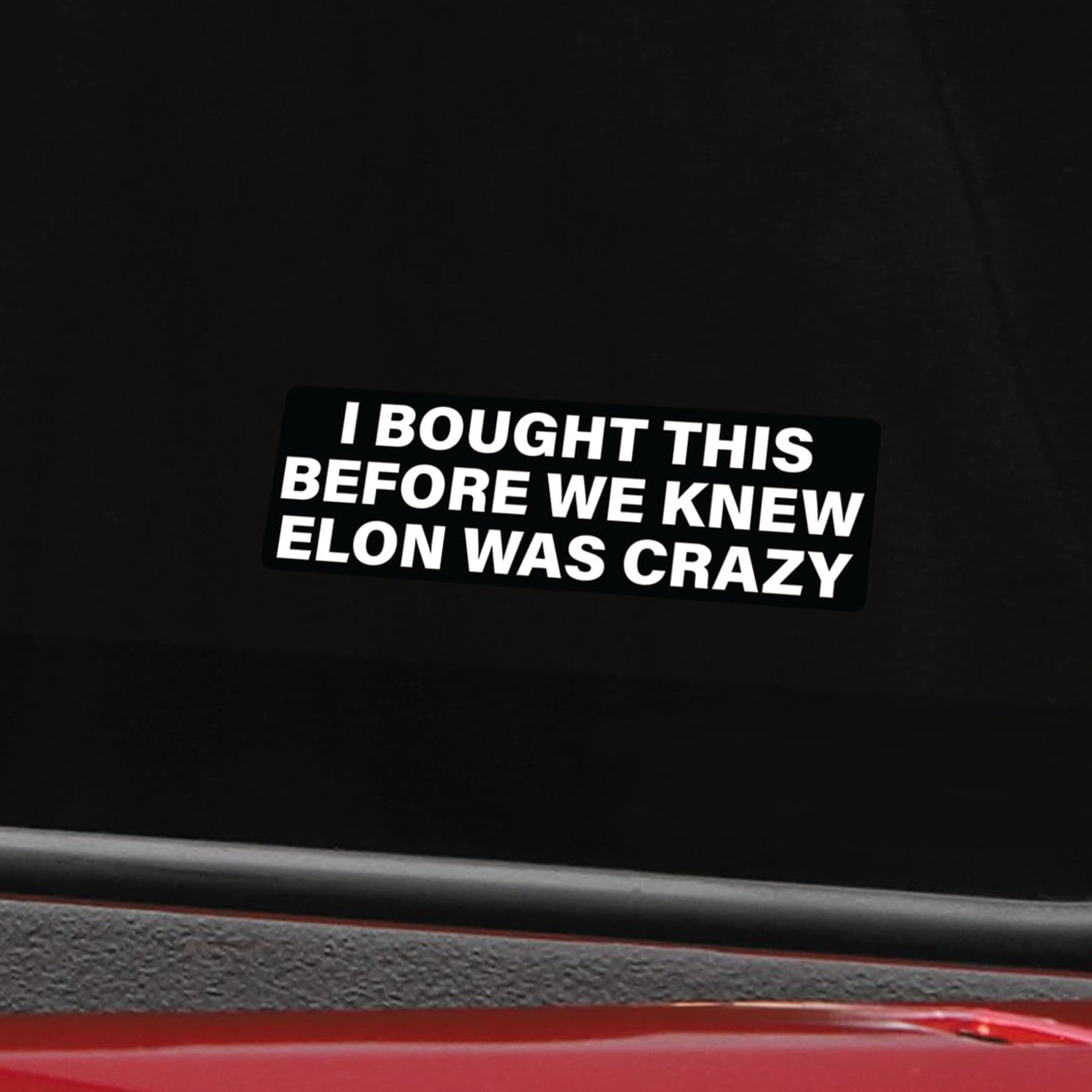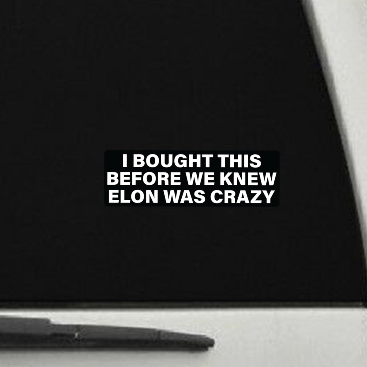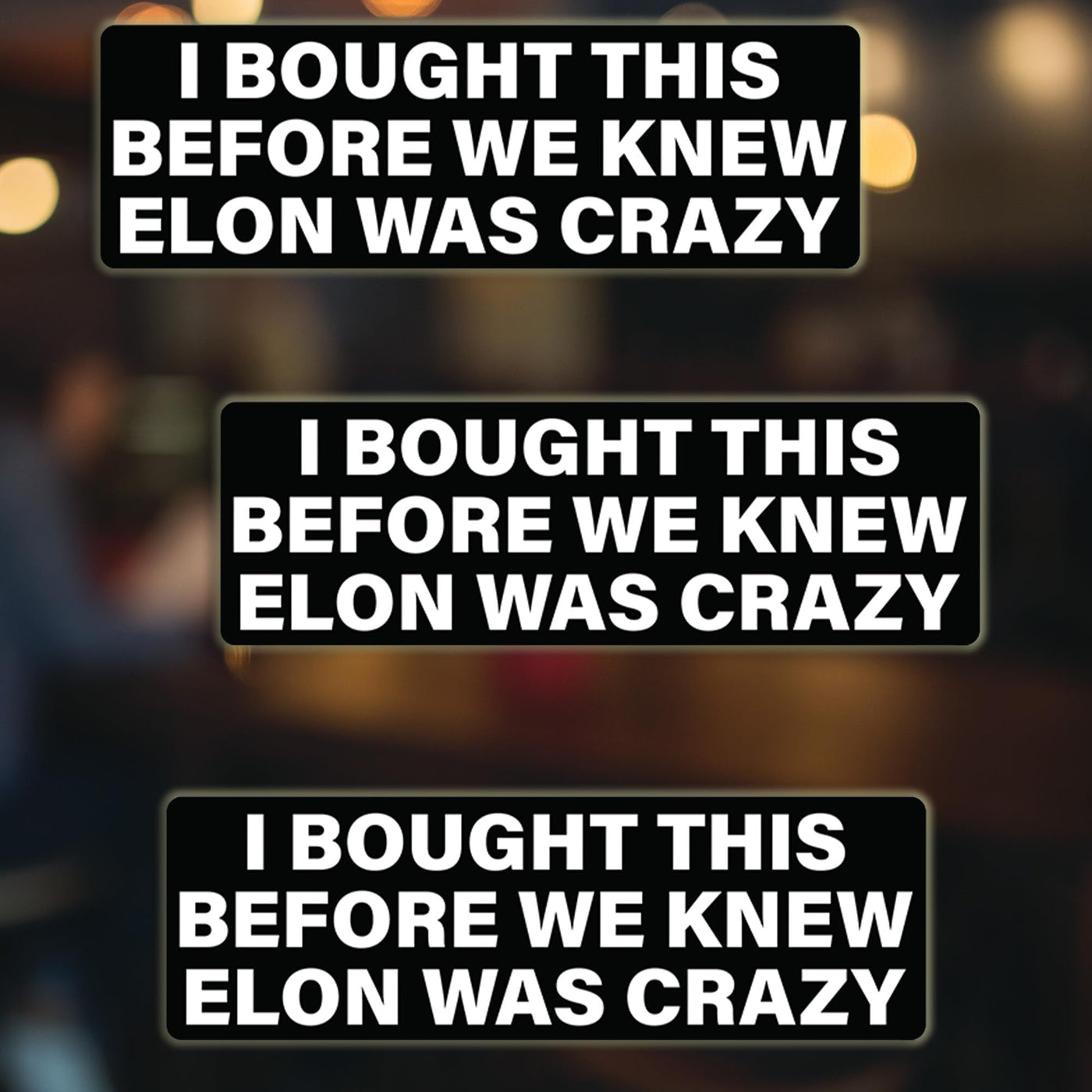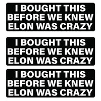 I Bought This Before We Knew Elon was Crazy - Funny Vinyl Sticker Decal 3-Pack for Cars, Laptops, Bumpers, Windows - 5 x 1.5 Inc