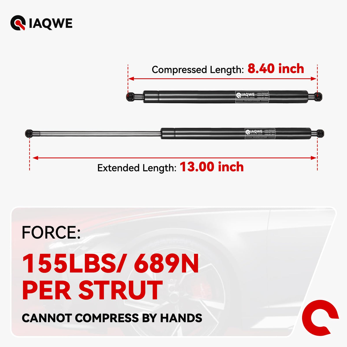 Iaqwe 4129-W 13Inch 155Lb/689N Gas Struts Shocks Springs 13'' Lift Support For Snugtop Are Leer Truck Camper Shell Topper Rear C