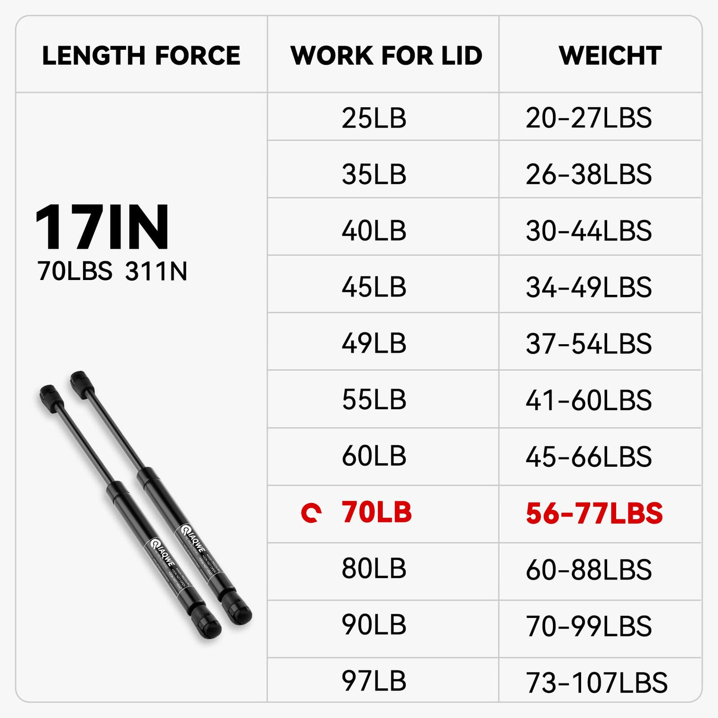 Iaqwe C1606288 17Inch 70Lb/311N Gas Struts Shocks Springs 16.97In Lift Support For Snugtop Are Leer Truck Camper Shell Topper Re