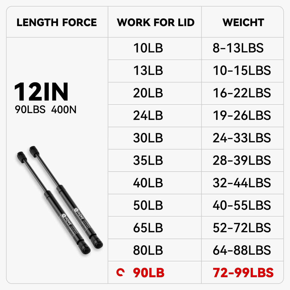 3701EV,4512,5666BK,7211SJ,8390,C1615056,C1615063,GP51090,SE120P90,SE350A90 90lbs 400N 12 Inch Gas Struts Springs Shocks FIT for ARE Leer Snugtop Truck Camper Shell Topper Rear Window RV Bed Storage Tool Box Lid Trash Bin Outdoor Bench Cabinet Trap Door Trailer Floor Hatch 2pcs by IAQWE And Suitable for RV Queen Bed, RV Storage, RV Cabinet Door, Floor Hatch, Tool Box Lid, Truck Canopy Cover, Tonneau Cover, travel trailer ramp, Camper Shell, Bar Window, Chicken Coop, Heavy Duty, Large Cabinet, Outdoor Bench, Trash Bid and so on.