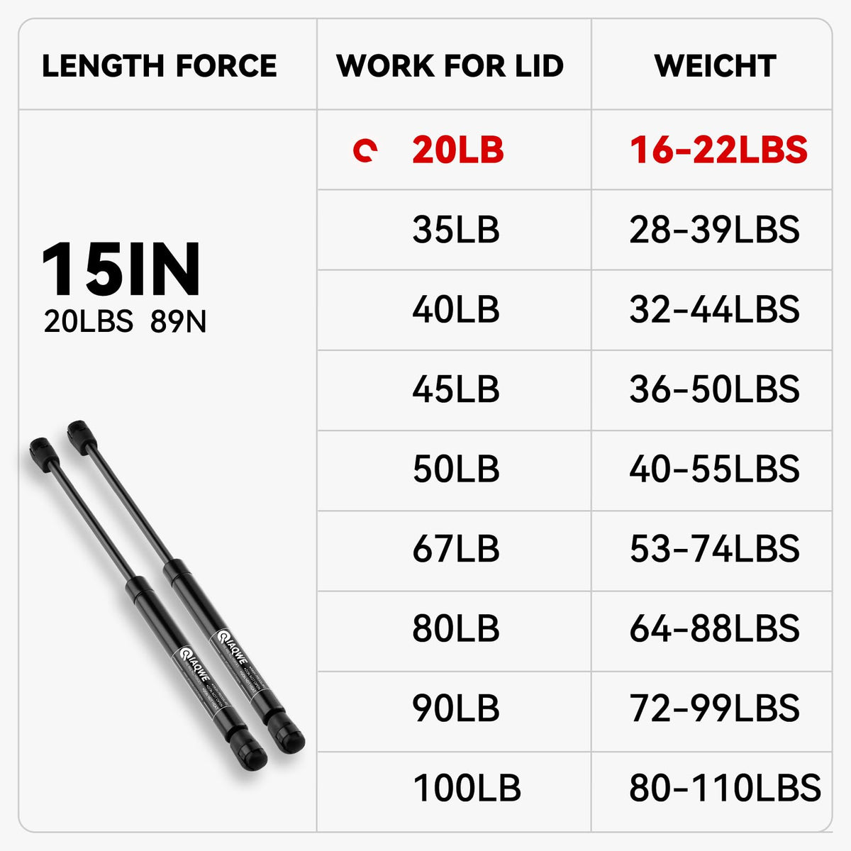Iaqwe C1615064 15Inch 20Lb/89N Gas Struts Shocks Springs 15.50In Lift Support For Snugtop Are Leer Truck Camper Shell Topper Rea