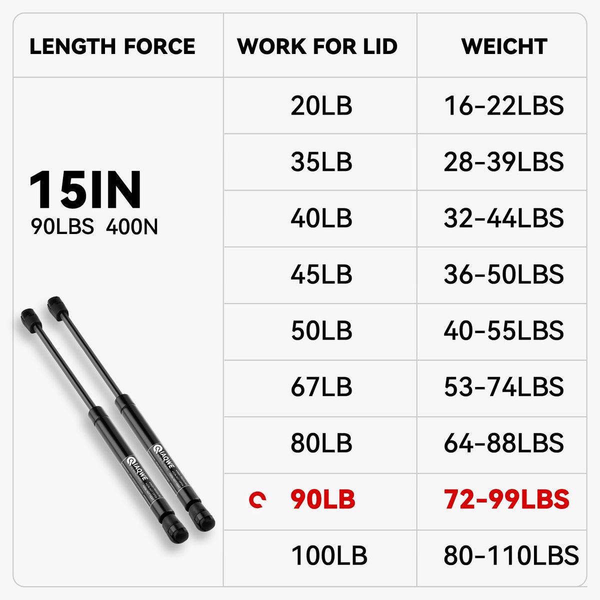 Iaqwe Ml3385 15Inch 90Lb/400N Gas Struts Shocks Springs 15'' Lift Support For Snugtop Are Leer Truck Camper Shell Topper Rear Ca