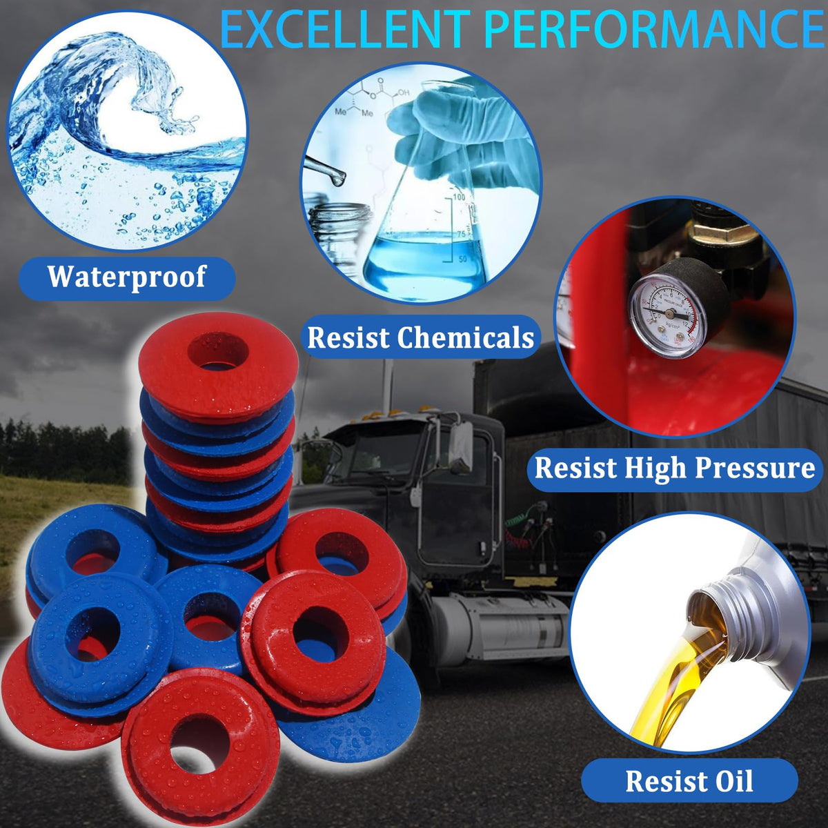 iBroPrat Glad Hand Seal Thick, 20pcs Gladhand Washers Rubber Seals Gasket Elastic Grommets for Semi Trucks Trailers Brake Air Ho