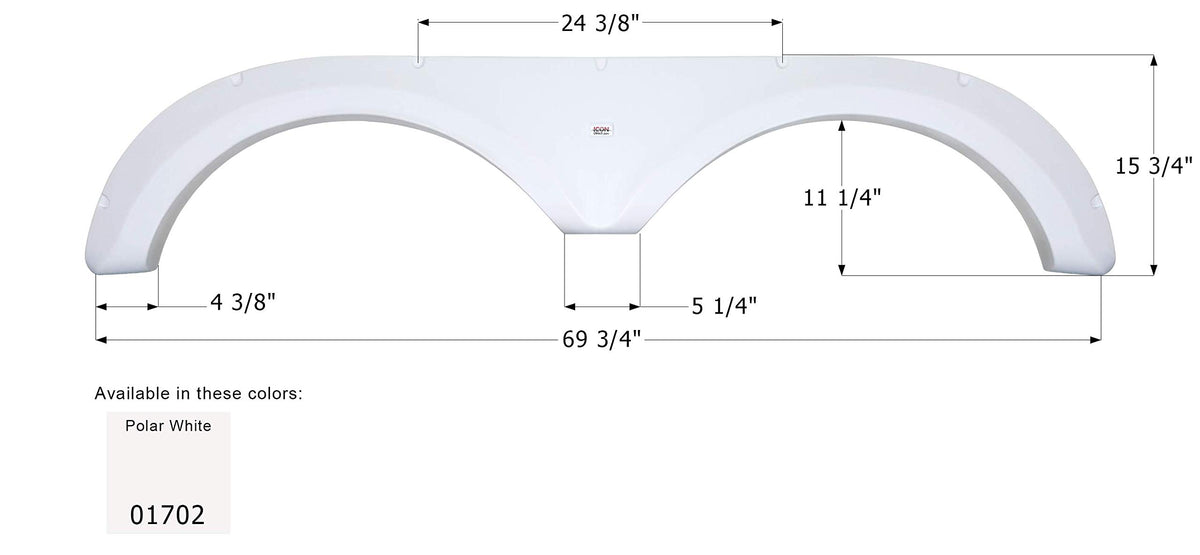 Q: What materials are used in the ICON 01702 Tandem Axle Fender Skirt?A: The ICON 01702 Tandem Axle Fender Skirt is constructed from durable high-impact ABS plastic, ensuring long-lasting performance and resistance to wear and tear.
