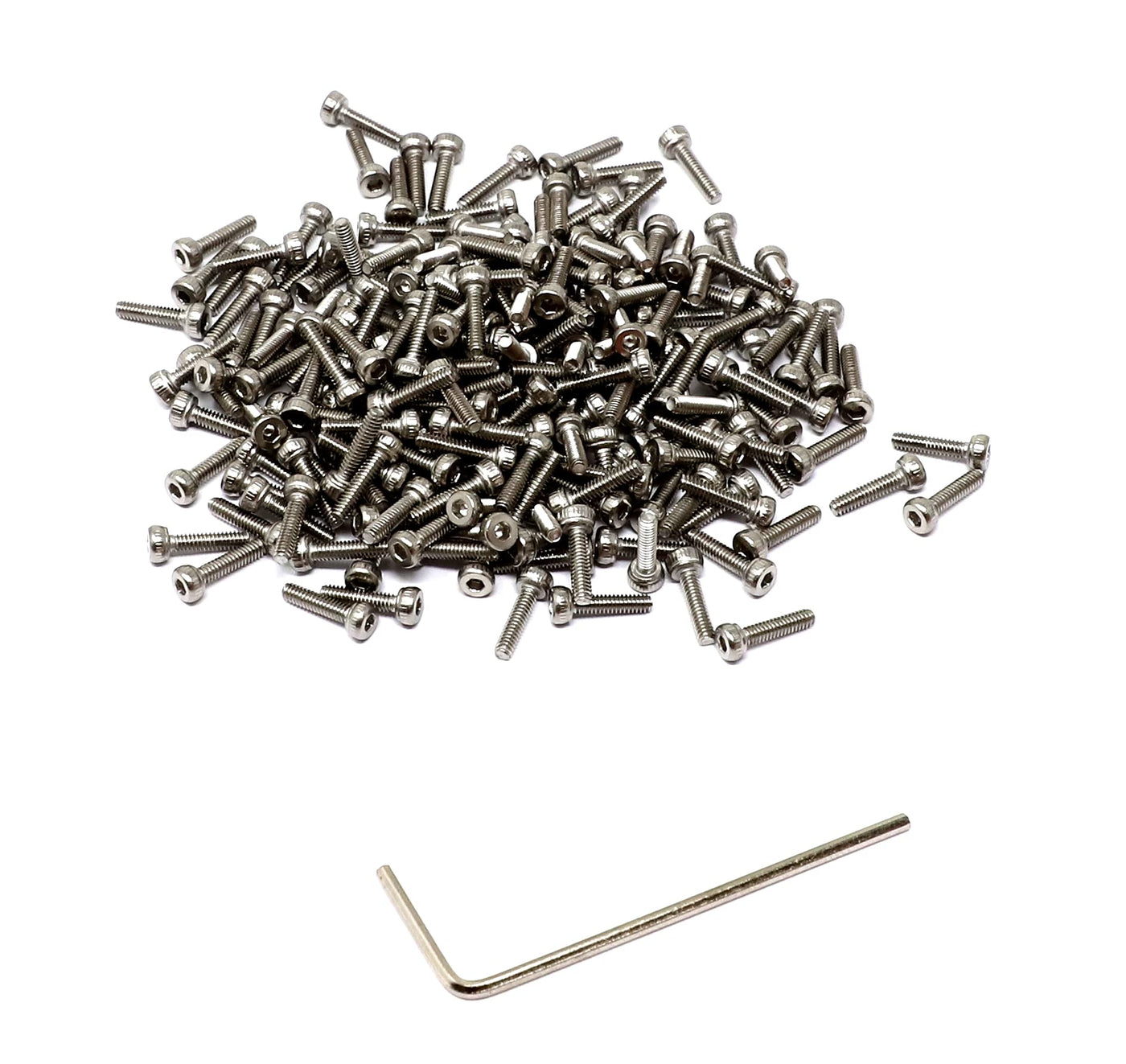 【iexcell 100 Pcs Metric M2-0.4 x 8 Stainless Steel 304 Hex Socket Head Cap Screws Bolts Kit】 ✔ Includes 100 Pcs M2-0.4 x 8 hex socket head cap screws, meets/exceeds DIN912 --Screw head style: socket cap, head diameter: 3.7 mm, head height: 2 mm ; screw drive style: internal hex drives also known as hex socket drives, hex size: 1.5 mm --Thread diameter: 2 mm (1.886~1.981 mm, tested) , thread pitch: 0.4 mm, thread length: 8 mm --M2-0.4 x 8 means: Metric Threads, Thread diameter: 2 mm, Thread Pitch: 0.4 mm, thread Length 8 mm --Material: stainless steel 304, high strength and anti-corrosion in various conditions ✔ Includes 1 Pcs hex key, hex size: 1.5 mm, to drive these screws conveniently and easily, material: chrome-vanadium steel, nickel plated, higher strength, anti-rust ✔ Easy to store: these screws and a hex key come in an easy-use storage case