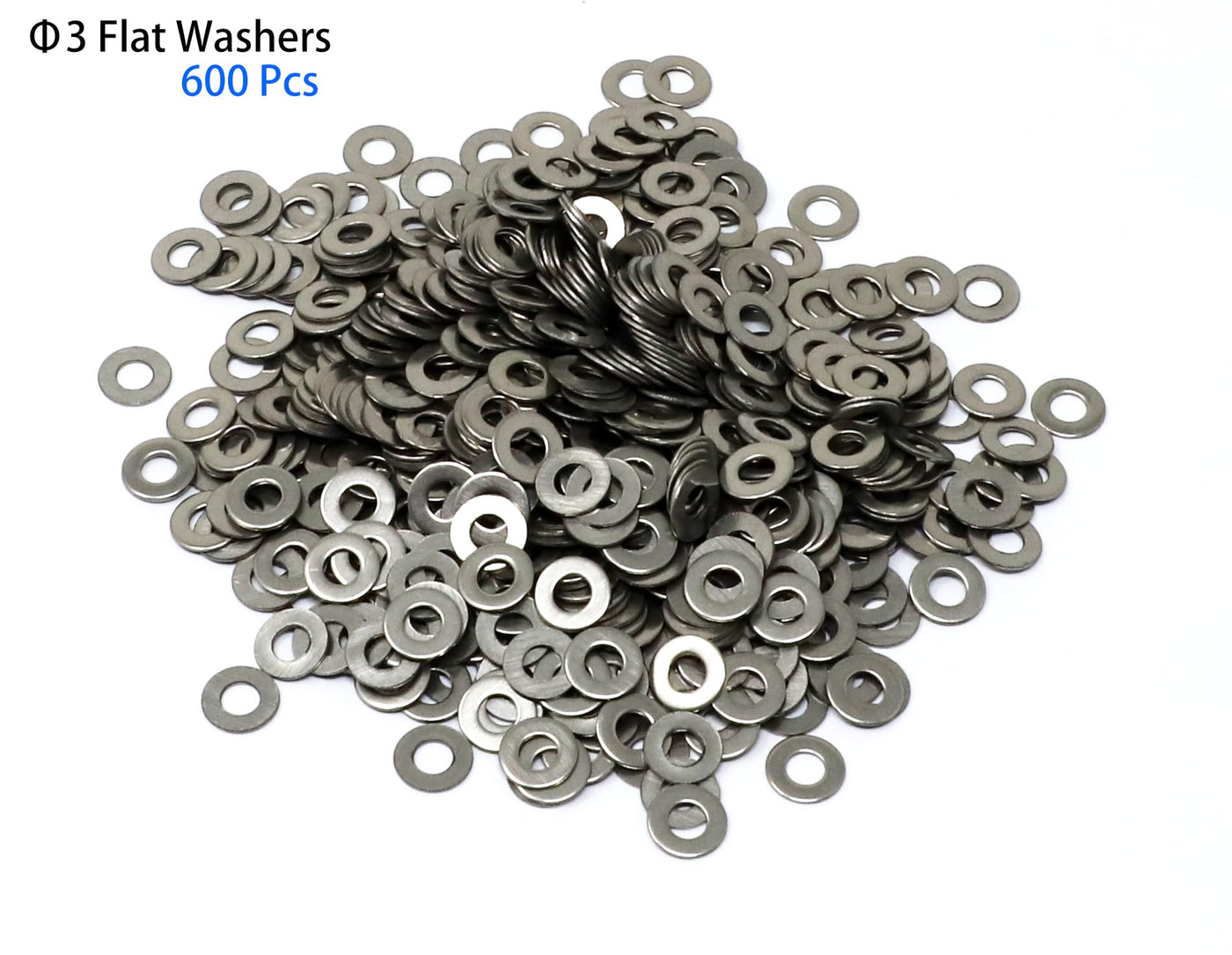 ✔ Contains 600 Pcs Φ3 Flat Washers →Meets DIN125 →Thickness: 0.50 ± 0.05 mm, outer diameter: 6.82 ± 0.18 mm, inner diameter:3.29 ± 0.09 mm
