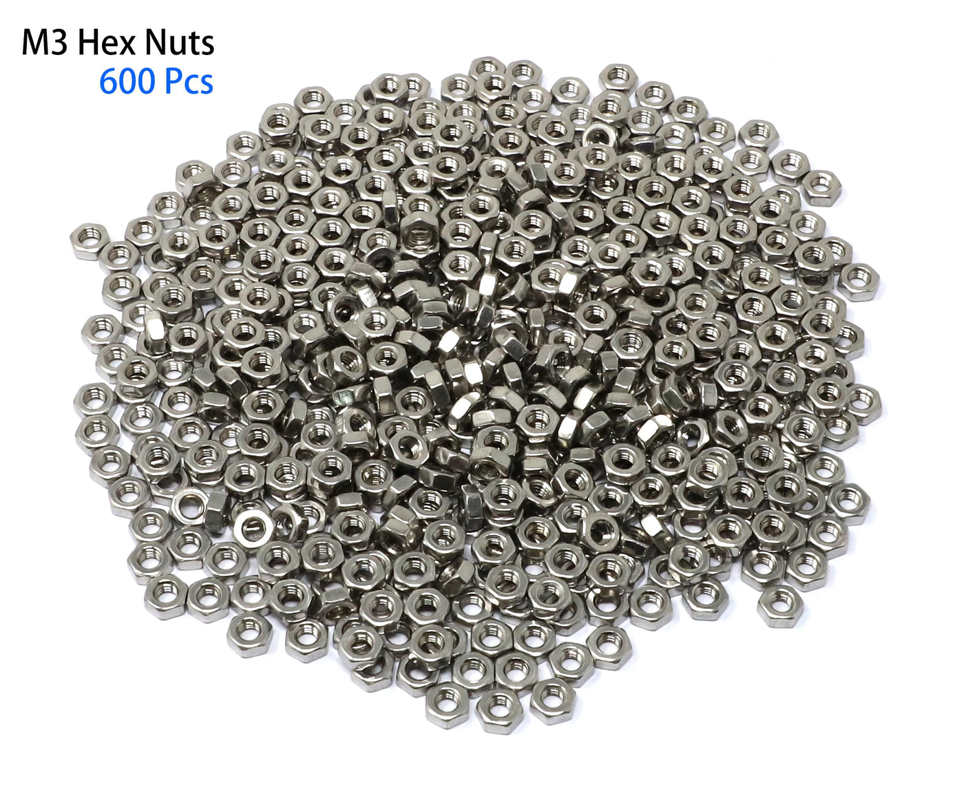 ✔ Contains 600 Pcs M3 Hex Nuts →Meets DIN934 →Thread pitch 0.5 mm →Thickness (height): 2.28 ± 0.13 mm, outer hex size: 5.41 ± 0.09 mm