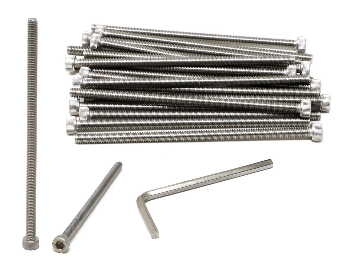 Q: What size hex key is required to drive these screws?A: The hex key included in this kit is 4.0 mm in size, which is specifically designed to drive the M5 x 110mm hex socket head cap screws conveniently and easily.