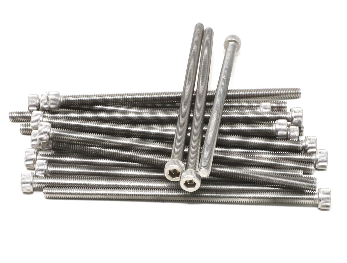 ✔ Contains 20 Pcs M5 x 110mm hex socket head cap screws --Meets/exceeds: DIN912 --Thread size ( diameter ): 5 mm --Thread Pitch: 0.8 mm --Thread Length: 110 mm ( Range: 110.00 ± 0.70 mm), Total Length ( includes head ): 114.91 mm ( Range: 114.91 ± 0.79 mm ) --Screw head style: socket cap head, head diameter: 8.50 mm ( Range: 8.50 ± 0.22 mm), Head Height: 4.91 mm ( Range: 4.91 ± 0.09 mm) --Screw drive style: hex socket drive, also known as internal hex drive, hex size: 4.0 mm --Made of Stainless steel 304, high strength and anti-corrosion in various conditions