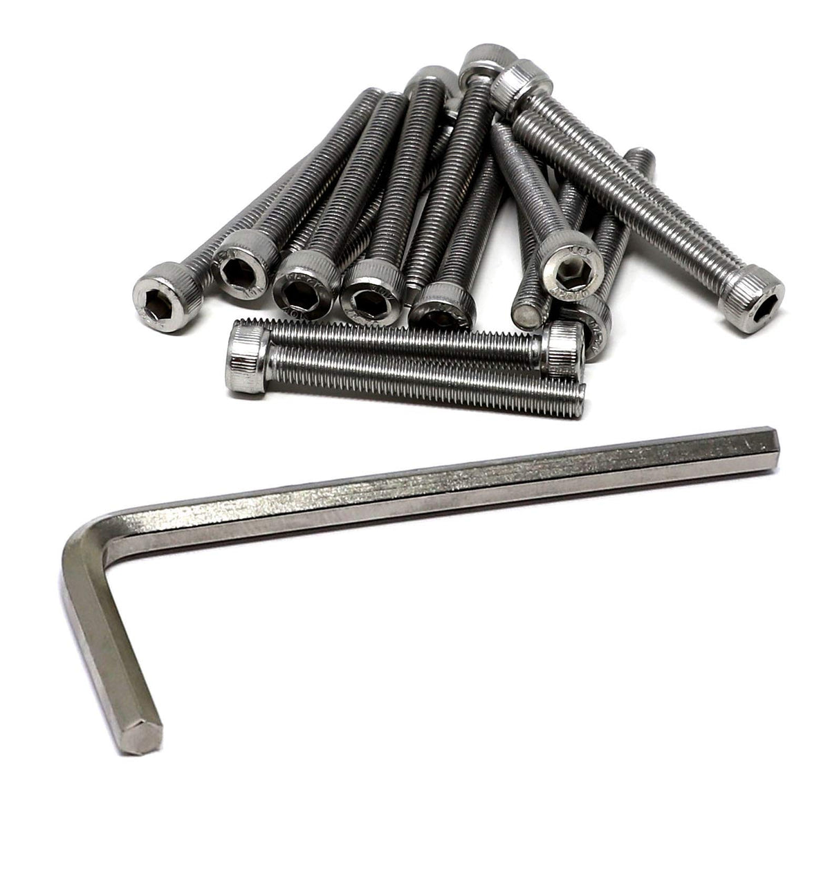 Q: What material are the screws and hex key made from?A: The screws are made from stainless steel 304, which provides high strength and anti-corrosion properties in various environments. The hex key is made from chrome-vanadium steel and is nickel plated for higher strength and rust resistance.