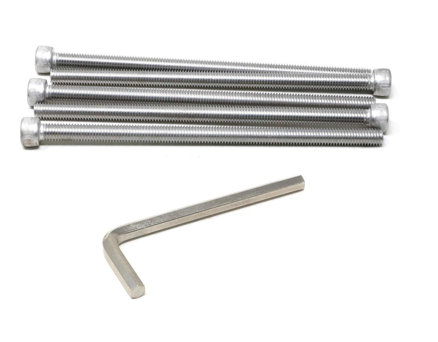 Q: Is there a storage solution provided for the screws and hex key?A: Yes, the product includes a plastic storage box that conveniently holds the 5 Pcs M8 x 150mm hex socket head cap screws and the 1 Pcs hex key, keeping them organized and easy to access when needed.