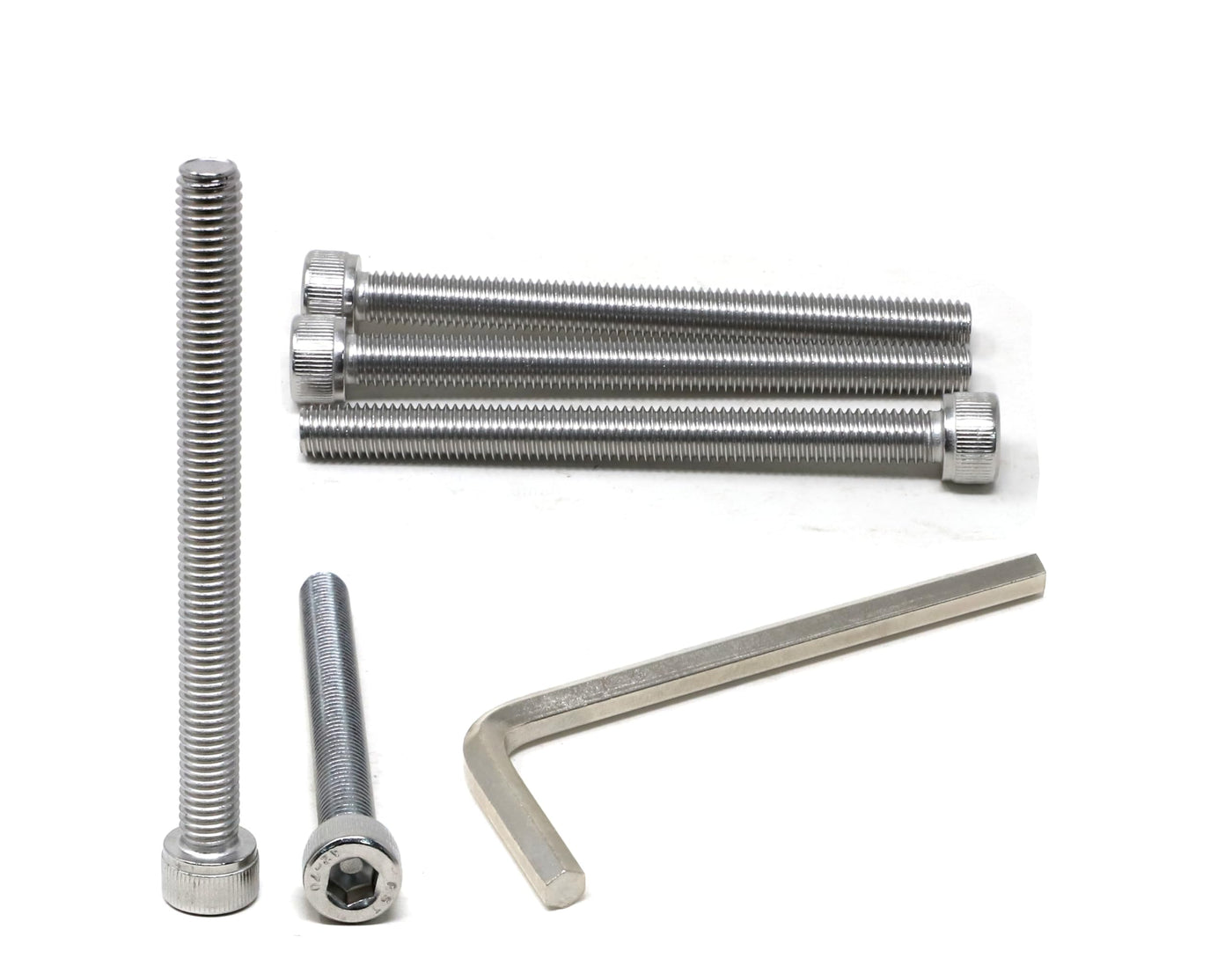 Q: What materials are used in the construction of these screws and the hex key?A: The screws are made from stainless steel 304, known for its high strength and anti-corrosion properties, suitable for various conditions. The included hex key is crafted from chrome-vanadium steel and nickel plated for enhanced strength and rust resistance.