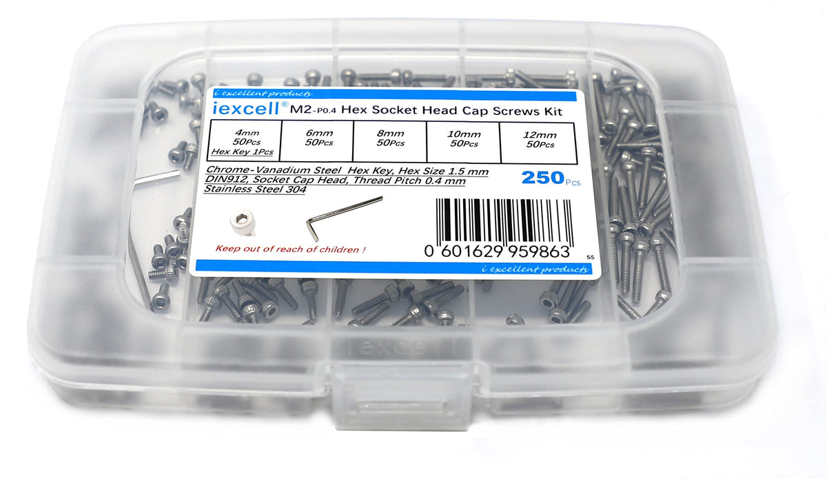 Q: What sizes are included in the iexcell M5 Hex Socket Head Cap Screws Assortment Kit?A: The iexcell M5 Hex Socket Head Cap Screws Assortment Kit includes five sizes: M5 x 20 mm, M5 x 25 mm, M5 x 30 mm, M5 x 35 mm, and M5 x 40 mm.
