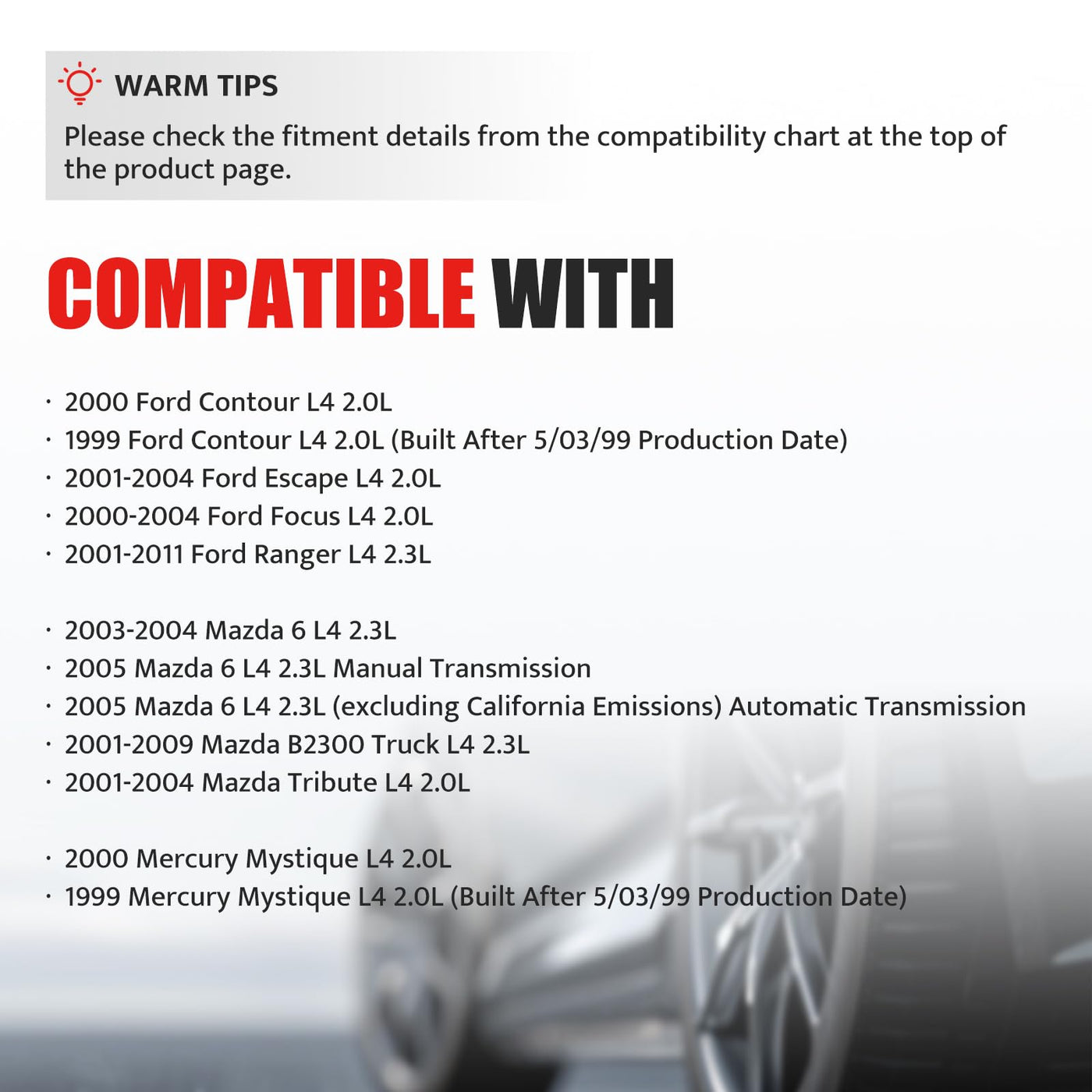 Npauto Ignition Coils Are Designed And Produced Under A Strict Quality Control System. With Premium Materials, The Part Specifications Can Meet Or Exceed Oem Standards. Features: Direct Fit And Easy Installation Optimum Performance Premium Quality With A Long Lifespan Compatible With: 2000 Ford Contour L4 2.0L 1999 Ford Contour L4 2.0L (Built After 5/03/99 Production Date) 2001 2002 2003 2004 Ford Escape L4 2.0L 2.0 01 02 03 04 2000-2004 Ford Focus L4 2.0L 2.0 2001 2002 2003 2004 2005 2006 2007 2008 2009 2010 2011 Ford Ranger L4 2.3L 2.3 01 02 03 04 05 06 07 08 09 10 11 2003-04 Mazda 6 L4 2.3L 2005 Mazda 6 L4 2.3L Manual Transmission 2005 Mazda 6 L4 2.3L (Excluding California Emissions) Automatic Transmission 01 02 03 04 05 06 07 08 09 Mazda B2300 Truck L4 2.3L 2001 2002 2003 2004 Mazda Tribute L4 2.0L 2.0 01 02 03 04 2000 Mercury Mystique L4 2.0L 1999 Mercury Mystique L4 2.0L (Built After 5/03/99 Production Date) Quantity: Pack Of 1Pc Warm Tips: 1. Professional Installation Is Recommended. 2. Please Compare The New Parts With Your Oem Parts Before The Installation, Which Can Help To Save A Lot Of Time If You Got The Wrong Parts In Some Cases.