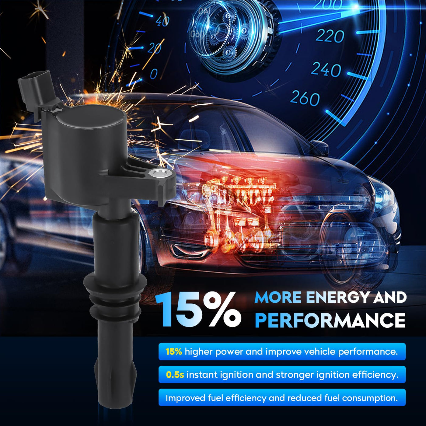About Us: AEagle as a professional auto parts supplier, is committed to providing high-quality products to our customers. Ignition coils can fail due to age, overuse, or simple manufacturing defects. Replace them as soon as your car starts to have trouble starting, the engine trouble light comes on, etc. All ignition coils are manufactured to exacting quality standards and are rigorously inspected and tested to ensure exceptional performance and durability. Key Features: Built to strict quality control standards. Direct fit and easy installation. Premium quality with a long lifespan. Compatible with: ford Expedition 5.4L V8 VIN:5, + Others 2005-2008 ford F-150 5.4L V8 Flex VIN:V 2006-2008 ford F-150 5.4L V8 VIN:5, + Others 2004-2008 ford F-250 Super Duty 5.4L V8 VIN:5, + Others 2005-2008 ford F-250 Super Duty 6.8L V10 VIN:Y 2005-2008 ford F-350 Super Duty 5.4L V8 VIN:5, + Others 2005-2008 ford F-350 Super Duty 6.8L V10 VIN:Y 2005-2008 for Lincoln Mark LT 5.4L V8 VIN:5, + Others 2006-2008 for Lincoln Navigator 5.4L V8 VIN:5 2005 for Lincoln Navigator 5.4L V8 VIN:5, + Others 2006-2008 To ensure that the part is properly installed on your vehicle, please use the FITMENT function at the top of the list and input your full vehicle information. Replace for Part Number: DG511, GD511, FD508, SP546, PZH14F, SP515, 3L3U12A366BB, 3L3Z12029BA, HT15, SP507, C1541, 3L3E12A366CA, 5C1584, 50082, 601000, UF537, C1659 Package Includes: 8 coils and 8 spark plugs.