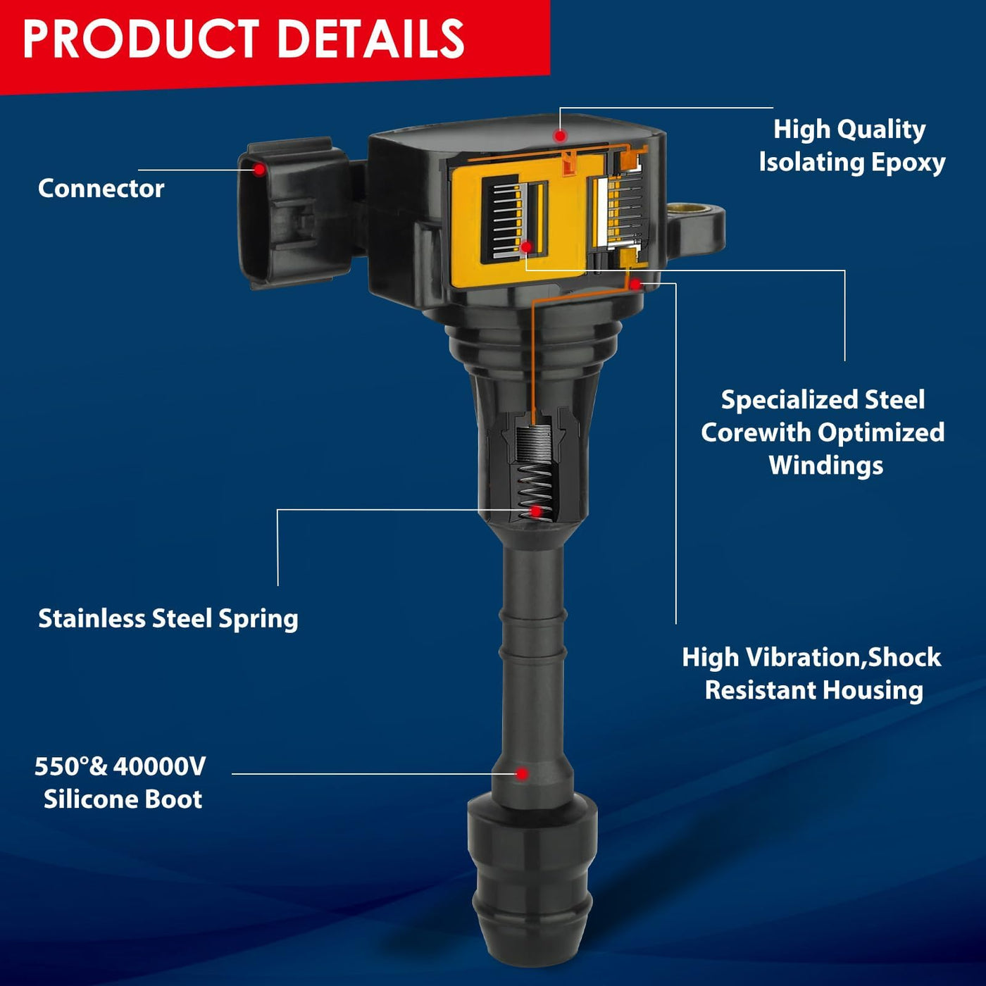 Ignition Coil Pack UF349 and Iridium Spark Plugs 6376 Replacement for Nissan Quest Maxima Altima Frontier Murano Pathfinder Xter