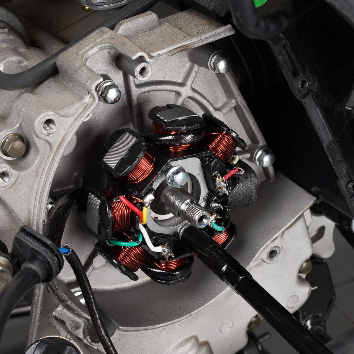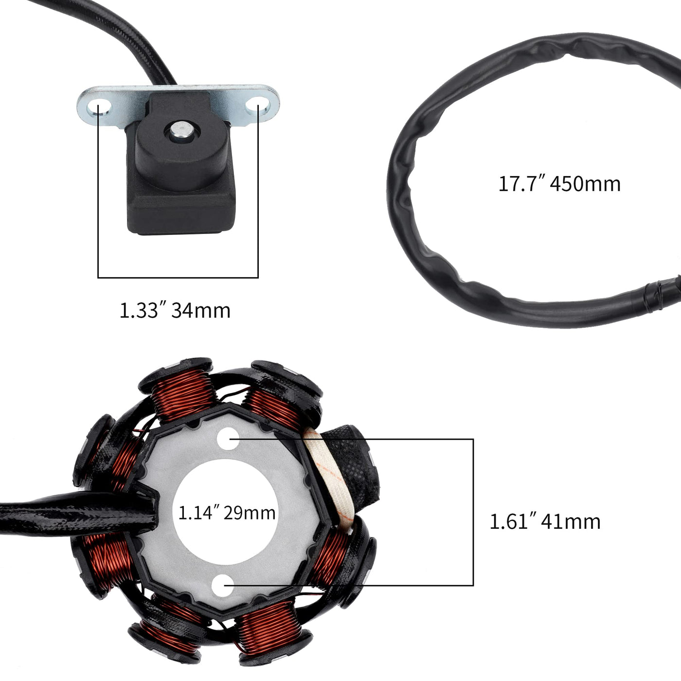 Aftermarket 8-coil AC magneto stator Designed to produce optimum output electricity Replace existing damaged coil,plug-and-play,direct fit,easy installation Highest grade lamination material and copper winding to offer long lasting durability