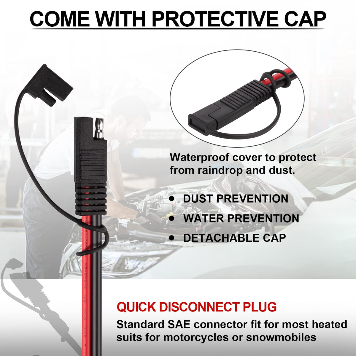 Q: What type of connector does this cable use?A: The iGreely SAE Extension Cable features a two-pin SAE connector. This design allows for quick disconnects and secure connections.