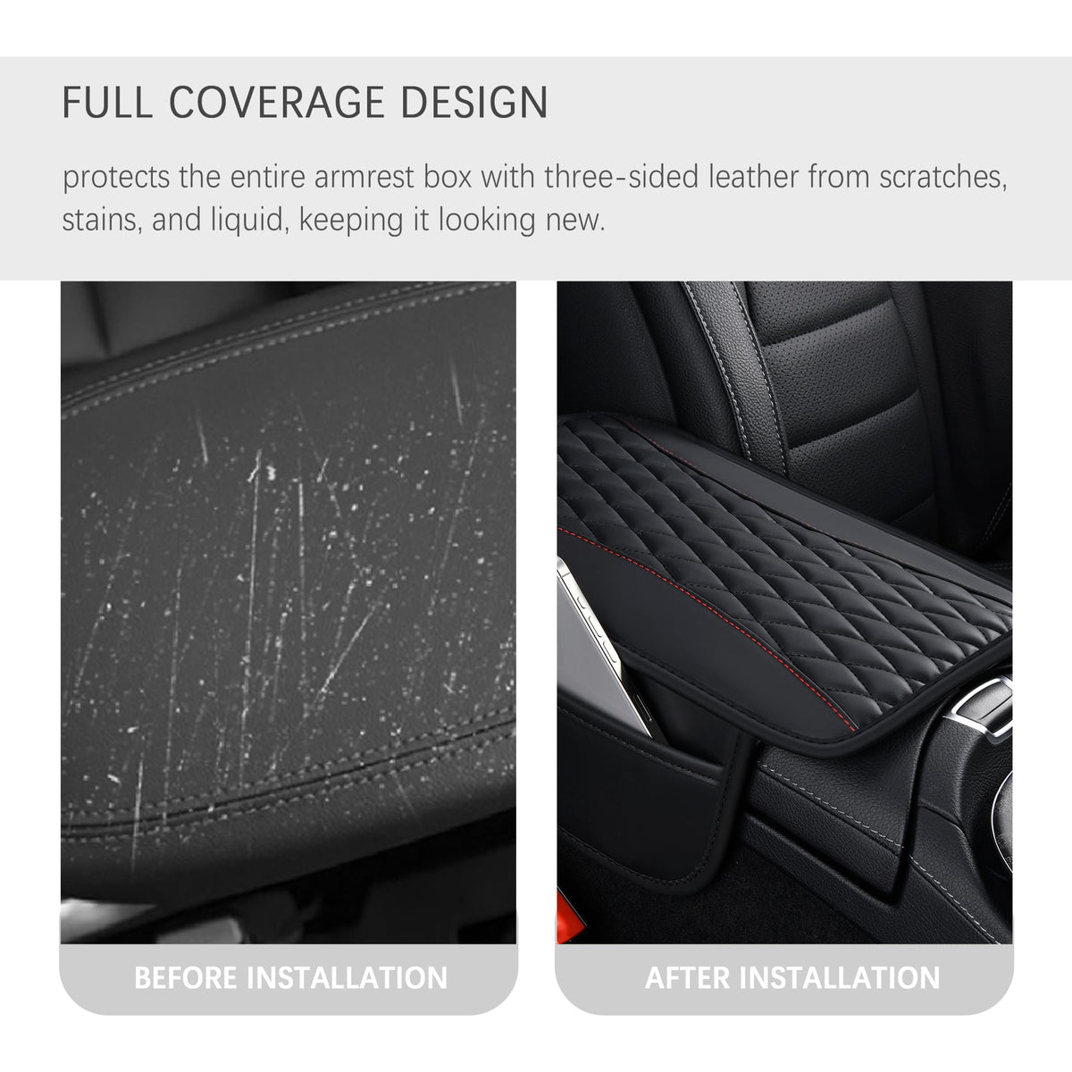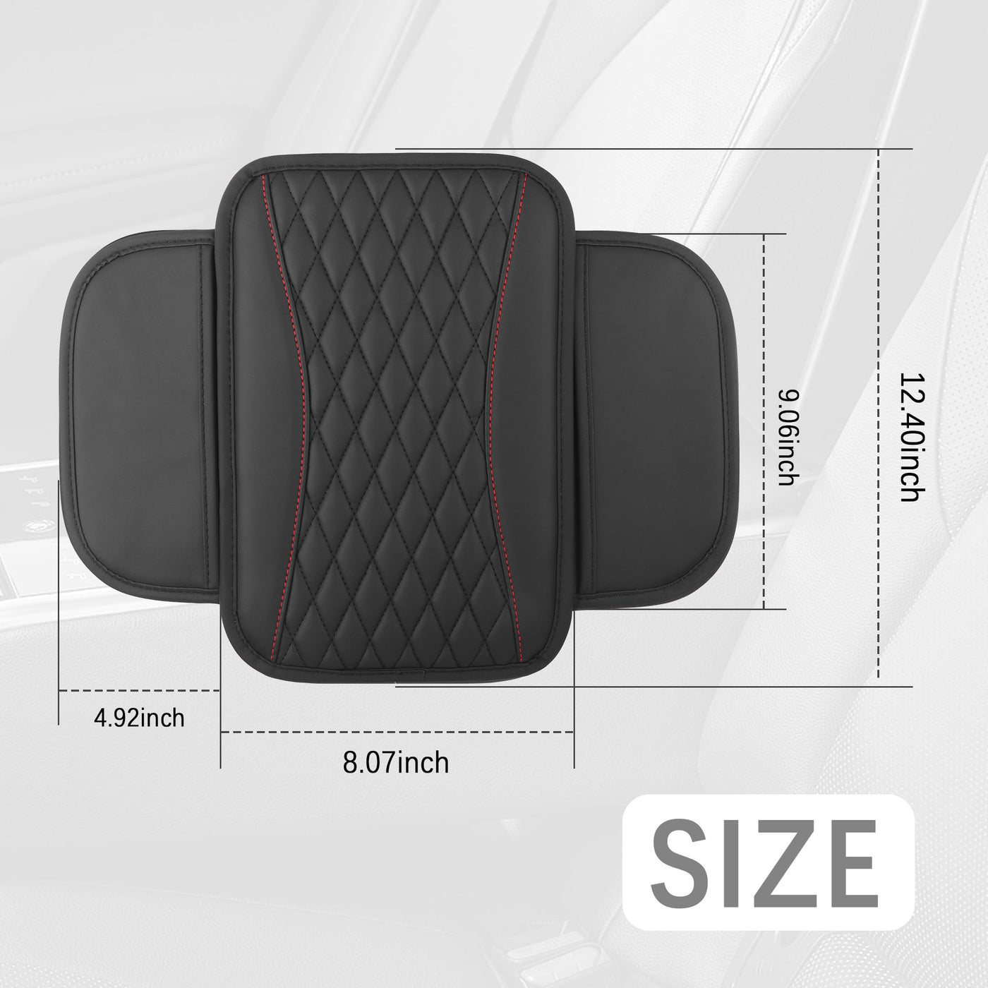 DRIVE MORE COMFORTABLY, UPHOLSTERY LASTS LONGER - CHOOSE OUR CENTER CONSOLE ARMREST CUSHIONS!? Product Properties? Color: Blue, Black, Red, Gray, Beige, Purple, Pink. ? Material: Leathers? Size: 12.40*8.07*0.70 inch ? Weights:6.25 oz? Package: 1PCS Car Center Console Cover? Product Features & Function? Made of soft material, it can provide arm and wrist support for drivers and passengers, reducing fatigue from long hours of driving.? Car center console cover can protect the center console from wear and tear, scratches and stains from daily use, prolonging the service life of car interiors.? Car armrest cover are designed in various colors such as blue, black, red, gray, rice, purple and pink, which can match with the interior style of the car and enhance the aesthetics of the car.?The car armrest cushion are designed with elastic straps, which can be easily fixed on the center console and not easy to fall off.