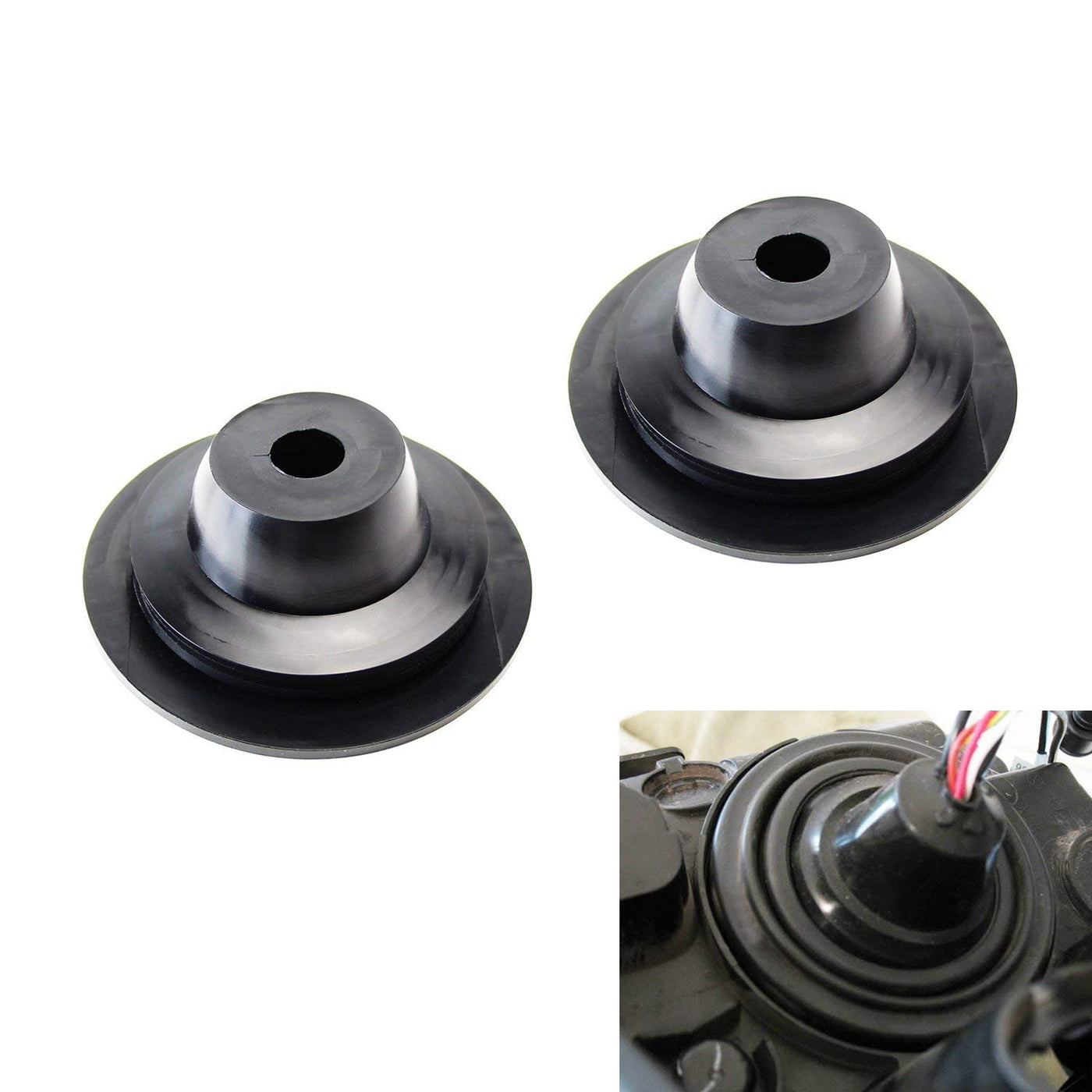 This page features a brand new set of iJDMTOY (2) Universal Rubber Housing Seal Caps Compatible With Headlight Install Xenon Headlight Kit, Aftermarket Headlamp or Retrofit.