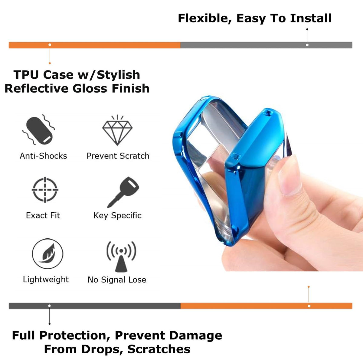 Q: How does the TPU material protect my key fob?A: The Thermoplastic Polyurethane (TPU) material used in this key fob cover provides excellent protection against dirt, shocks, drops, scratches, dents, and even water damage. Its durable and glossy finish not only enhances the appearance of your key fob but also safeguards it from daily wear and tear.