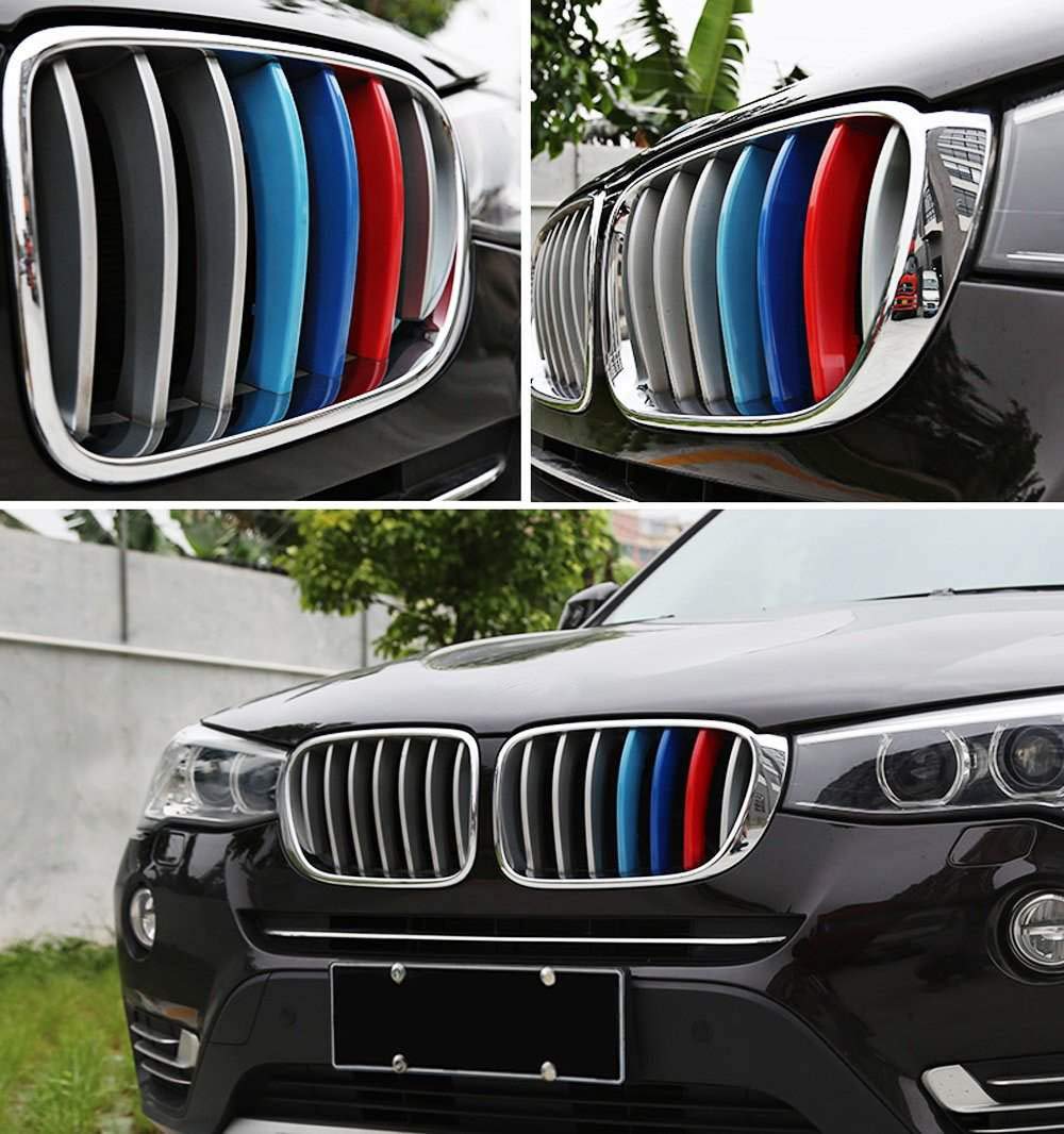 iJDMTOY Exact Fit M-Color Grille Insert Trims Compatible with BMW F25 X3 F26 X4 Center Kidney Grill (7 Beams)