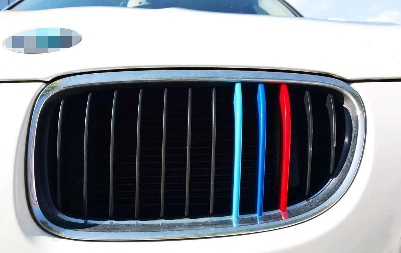Ijdmtoy Exact Fit ///M-Colored Grille Insert Trims Compatible With 2009-2012 Bmw E90 E91 Lci 3 Series 325I 328I 330I 335I Front Center Kidney Grilles (12 Beams)