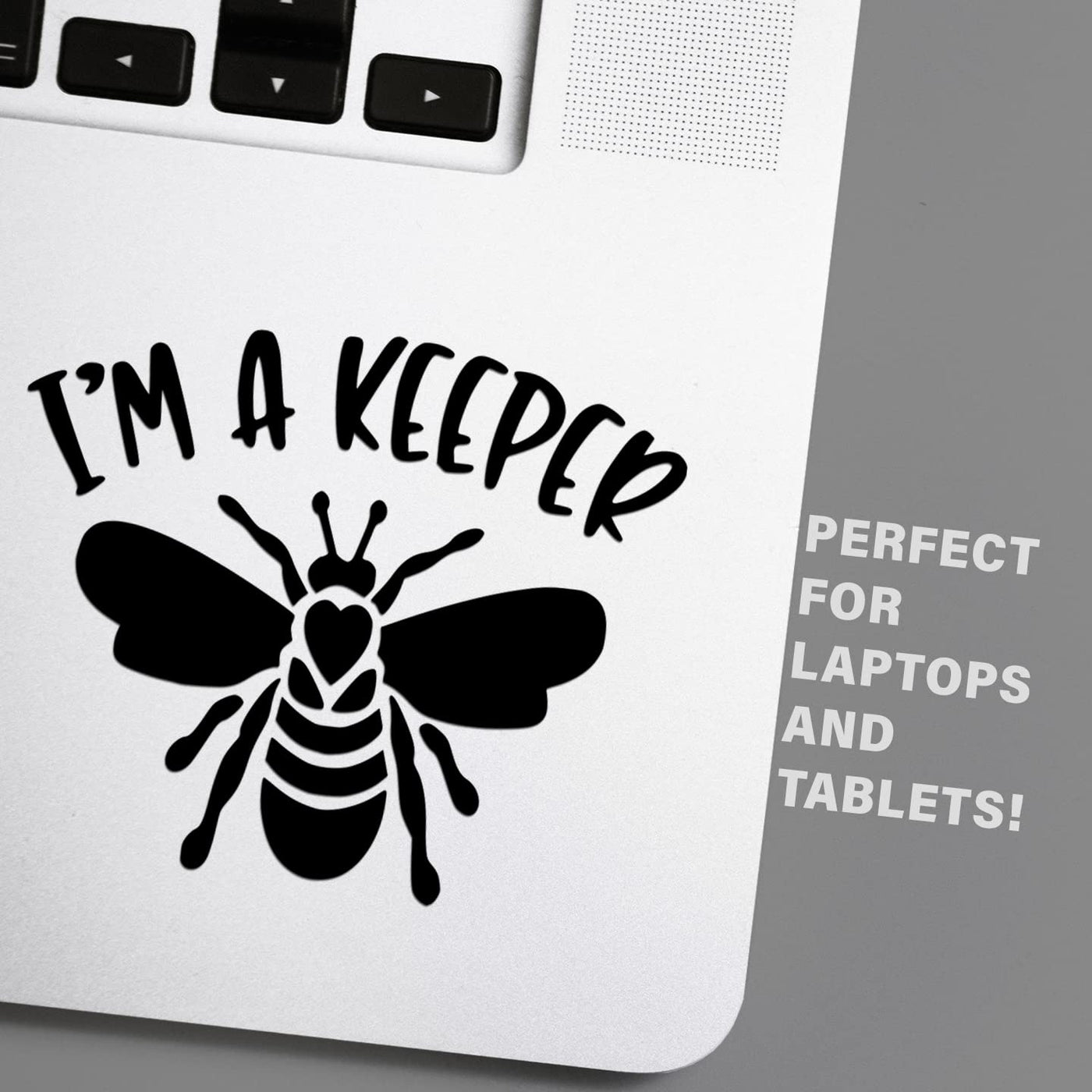 Q: What surfaces can I apply the I'm A Bee Keeper vinyl decal to?A: You can apply the I'm A Bee Keeper vinyl decal to most clean, smooth surfaces, including cars, trucks, vans, SUVs, windows, walls, cups, and laptops.