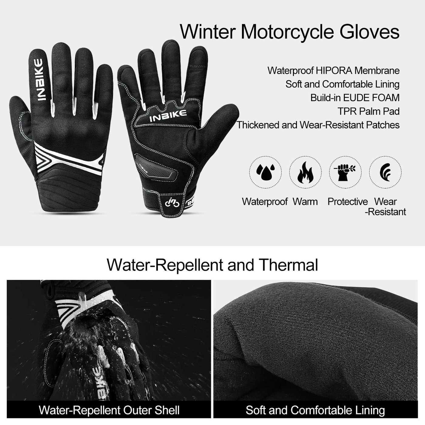 Inbike Waterproof Winter Motorcycle Gloves Thermal Fleece Touchscreen With Tpr Palm Pad Cushioning Hard Knuckle White Large