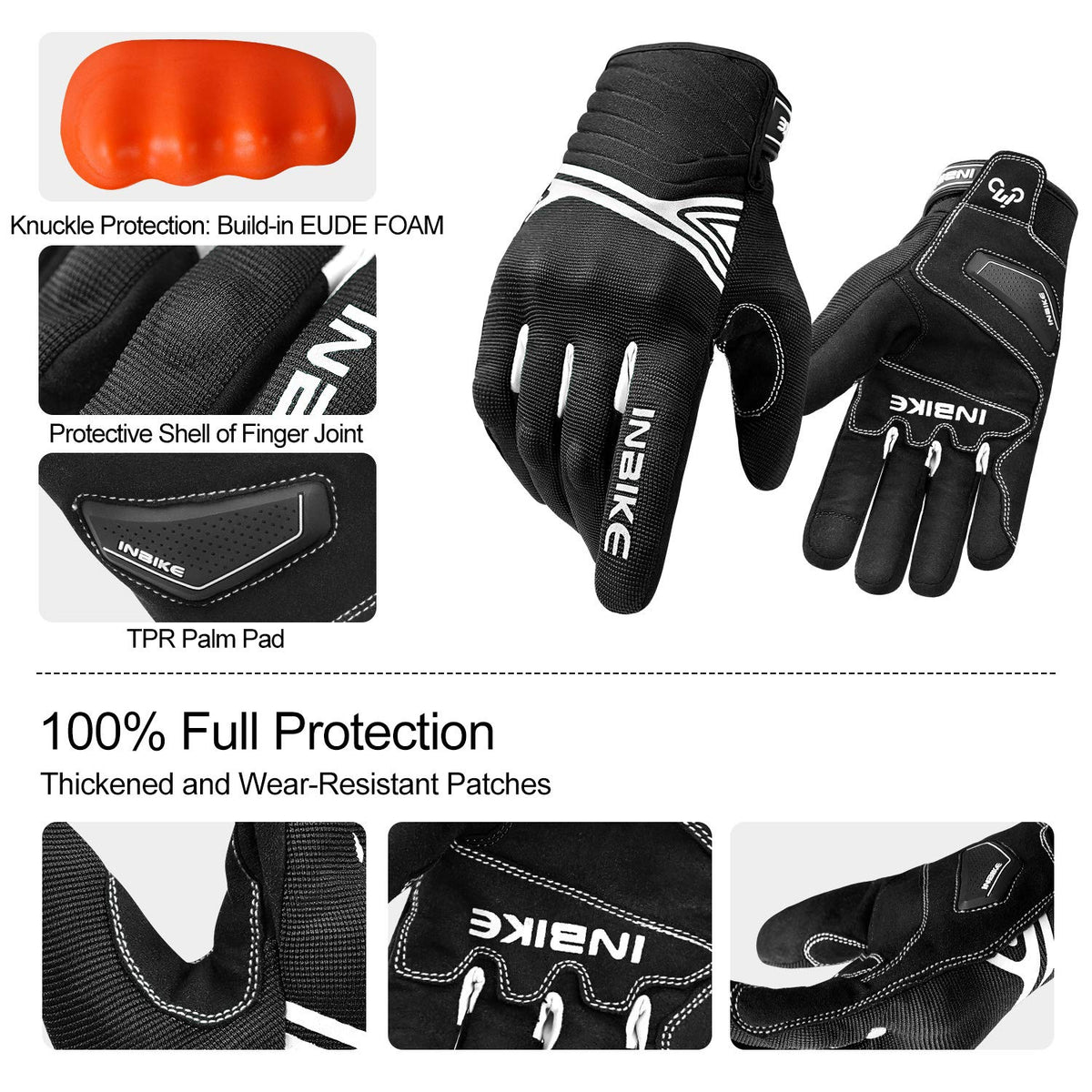 Inbike Waterproof Winter Motorcycle Gloves Thermal Fleece Touchscreen With Tpr Palm Pad Cushioning Hard Knuckle White Xx-Large