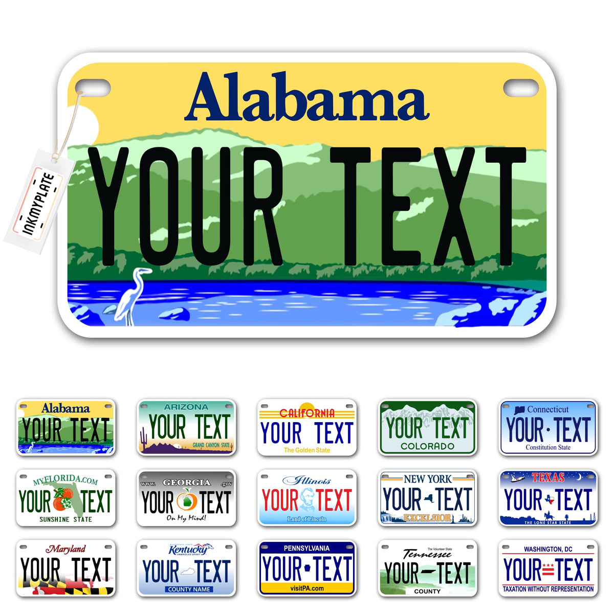 Inkmyplate Personalized Alabama Small License Plate | Motorcycle 7X4 In | 3 Sizes | Custom License Plates For Kids Bicycles | Power Wheels | Wagons | Atv | Usa Thick .040 Aluminum