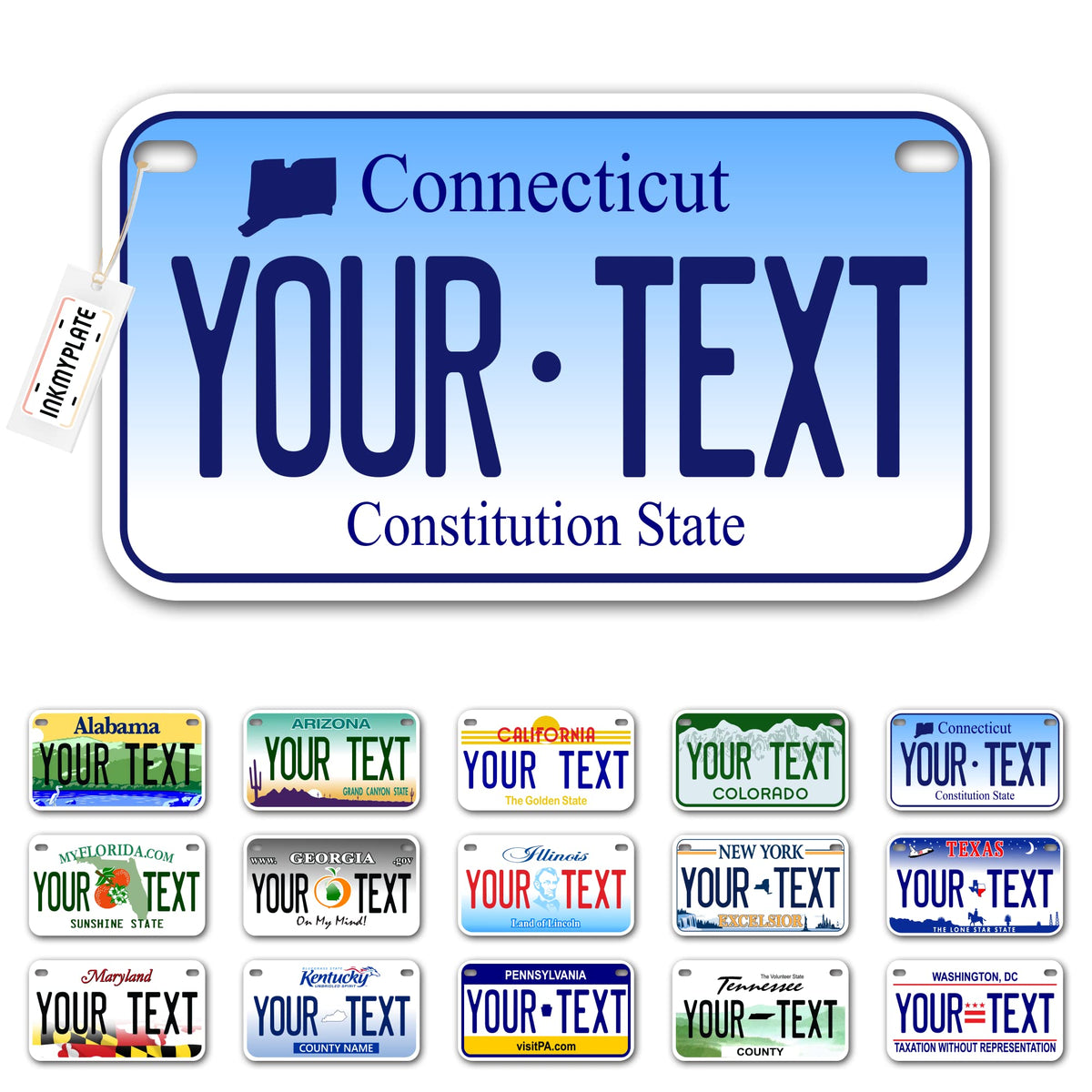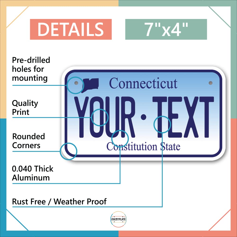 Inkmyplate Personalized Connecticut Small License Plate | Motorcycle 7X4 In | 3 Sizes | Custom License Plates For Kids Bicycles | Power Wheels | Wagons | Atv | Usa Thick .040 Aluminum