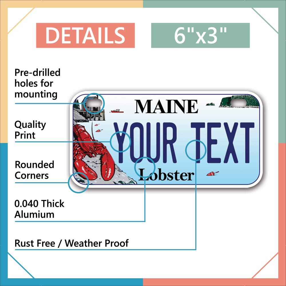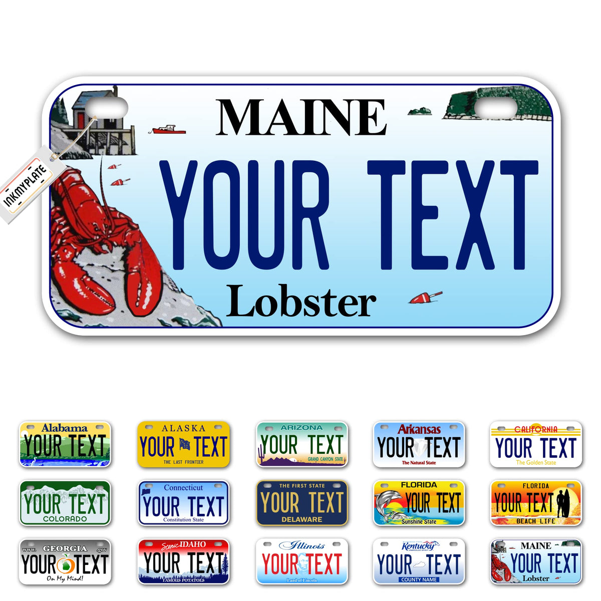 Inkmyplate Personalized Maine Small License Plate | Bike 6X3 Inch | Select From All 50 States | 3 Sizes | Custom License Plates