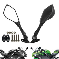 Q: How do the mirrors improve rear visibility?A: The Ninja 300 mirrors feature clean reflection convex designs that allow for wider and clearer visibility behind you. The adjustable ball joint enables multiple angle rotations, enhancing your view while riding.